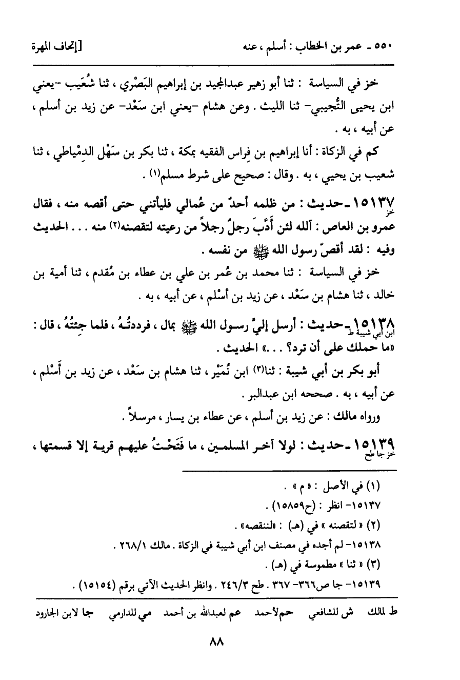 أبو بكر بن أبي شيبة: ثنا ابن نمَيْر، ثنا هشام بن سَعْد، عن زيد بن أسْلم، عن أبيه، به. صححه ابن عبد البر.