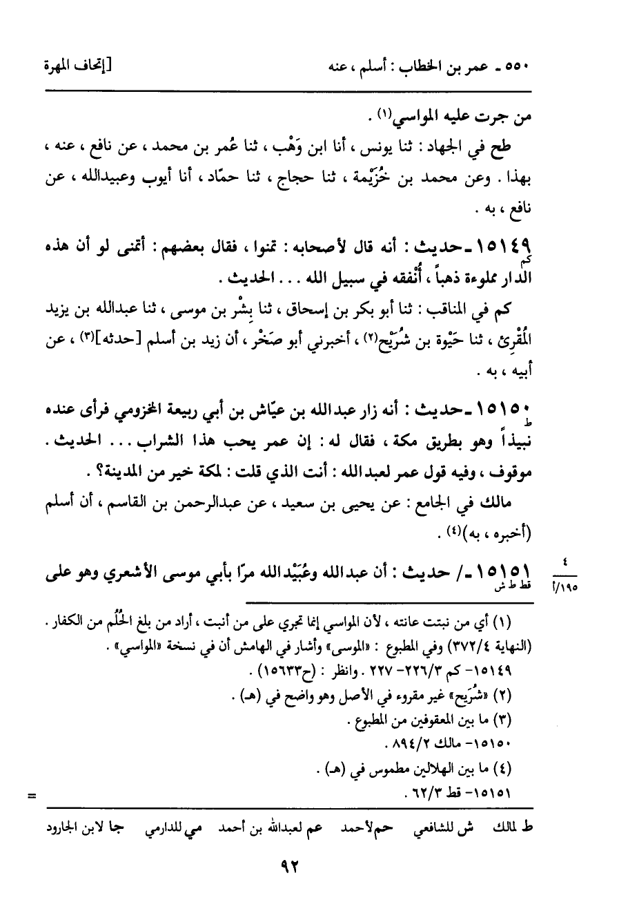 15150 - حديث (ط) : أنه زار عبد الله بن عياش بن أبي ربيعة المخزومي فرأى عنده نبيذاً وهو بطريق مكة، فقال له: إن عمر يحب هذا الشراب ... الحديث.