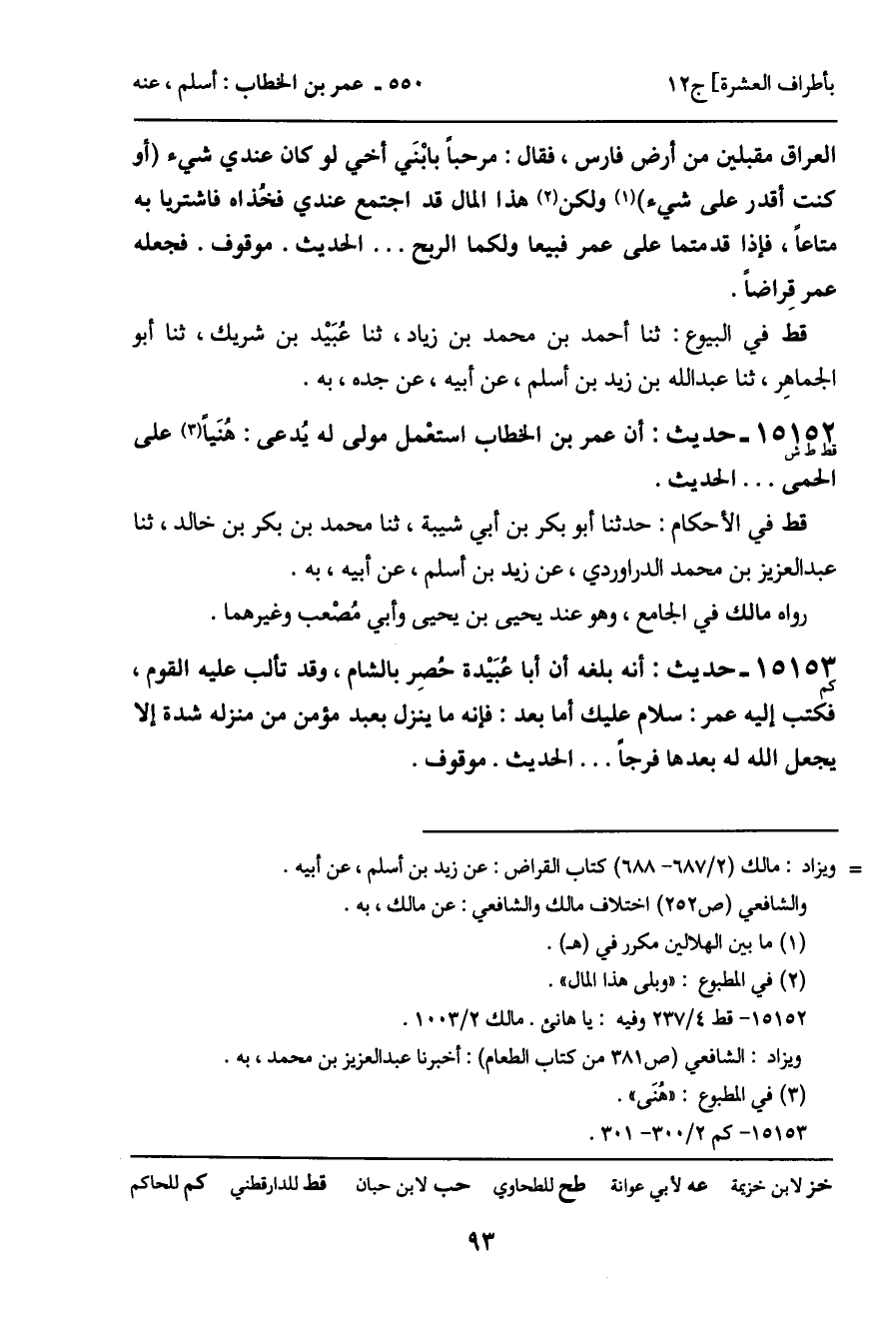 15152 - حديث (قط ط ش) : أن عمر بن الخطاب استعْمل مولى له يُدعى: هُنَياً على الحمى ... الحديث.