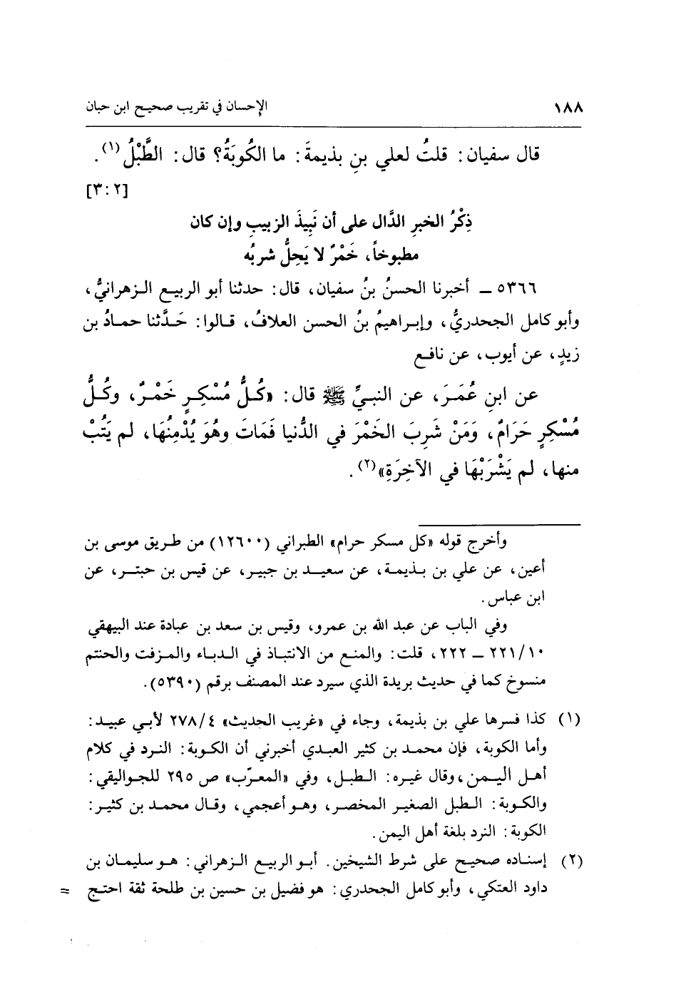 قَالَ سُفْيَانُ: قُلْتُ لِعَلِيِّ بْنِ بَذِيمَةَ: مَا الكوبة؟ قال: الطبل 1. [3:2]