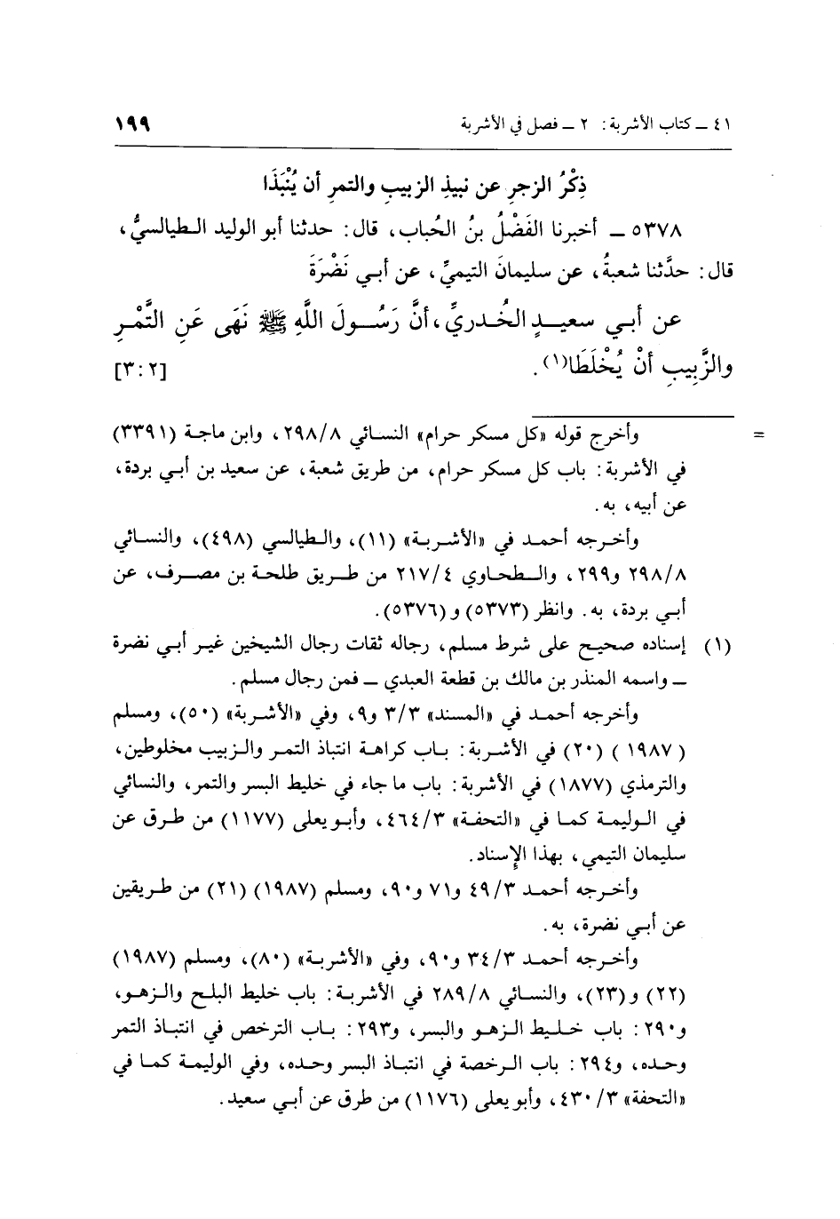 عَنْ أَبِي سَعِيدٍ الْخُدْرِيِّ, أَنَّ رَسُولَ اللَّهِ صَلَّى اللَّهُ عَلَيْهِ وَسَلَّمَ نَهَى عَنِ التَّمْرِ وَالزَّبِيبِ أَنْ يخلطا1. [3:2]