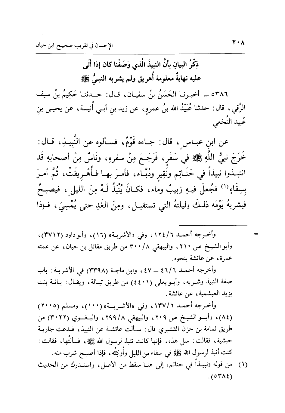 وأخرجه أحمد 6/46-47, وابن ماجة3398 في الأشربة: باب صفة النبيذ وشربه, وأبو يعلى4401 من طريق تبالة, ويقال: بنانه بنت يزيد العبشمية, عن عائشة.