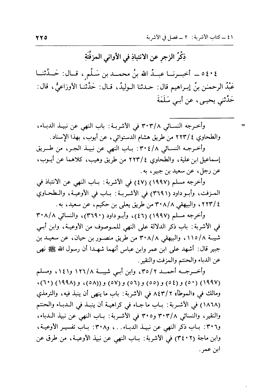 5404- أَخْبَرَنَا عَبْدُ اللَّهِ بْنُ مُحَمَّدِ بْنِ سَلْمٍ, قَالَ: حَدَّثَنَا عَبْدُ الرَّحْمَنِ بْنُ إِبْرَاهِيمَ قَالَ: حَدَّثَنَا الْوَلِيدُ, قَالَ: حَدَّثَنَا الْأَوْزَاعِيُّ, قَالَ: حَدَّثَنِي يحيى, عن أبي سلمة