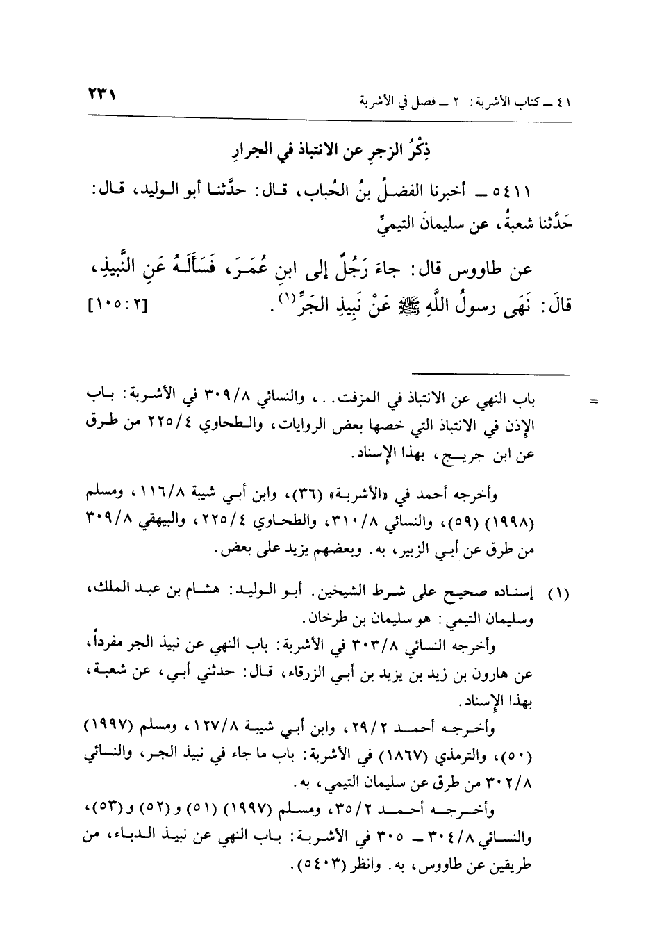 وأخرجه أحمد 2/29, وابن شيبة 8/127وومسلم199750, والترمذي1867 في الأشربة: باب ما جاء في نبيذ الجر, والنسائي 8/302 من طرق عن سليمان التيمي, به.