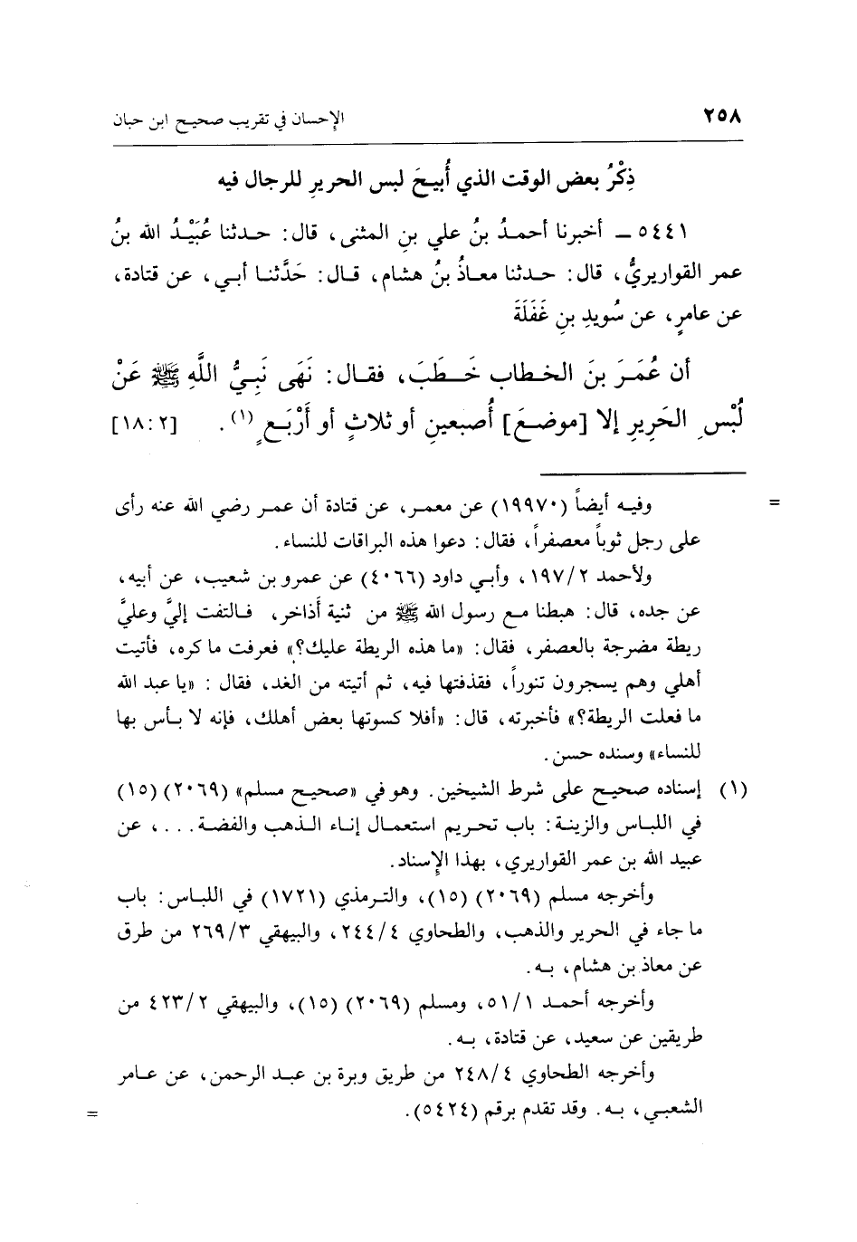 أَنَّ عُمَرَ بْنَ الْخَطَّابِ خَطَبَ, فَقَالَ: نَهَى نَبِيُّ اللَّهِ صَلَّى اللَّهُ عَلَيْهِ وَسَلَّمَ عَنِ لُبْسِ الْحَرِيرِ إِلَّا [مَوْضِعَ] أصبعين أو ثلاث أو أربع1. [18:2]