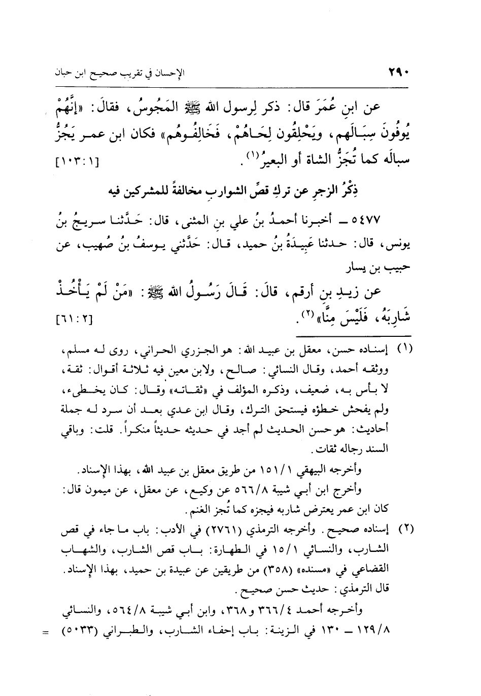 5477 - أَخْبَرَنَا أَحْمَدُ بْنُ عَلِيِّ بْنِ الْمُثَنَّى، قَالَ: حَدَّثَنَا سُرَيْجُ بْنُ يُونُسَ، قَالَ: حَدَّثَنَا عَبِيدَةُ بْنُ حُمَيْدٍ، قَالَ: حَدَّثَنِي يُوسُفُ بْنُ صُهَيْبٍ، عَنْ حَبِيبِ بْنِ يَسَارٍ