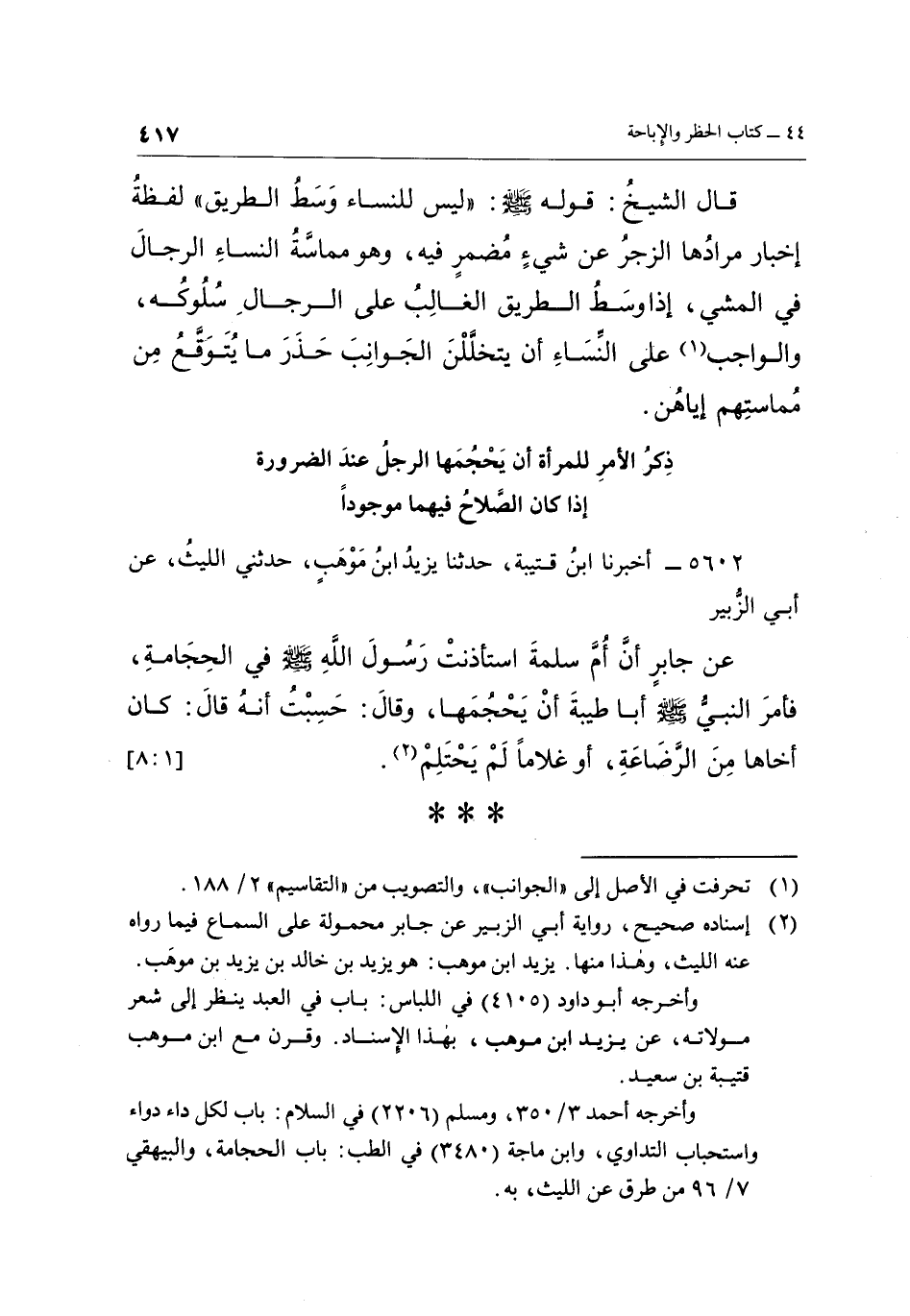وأخرجه أبو داود (4105) في اللباس: باب في العبد ينظر إلى شعر مولاته، عن يزيد ابن موهب بهذا الإسناد. وقرن مع ابن موهب قتيبة بن سعيد.