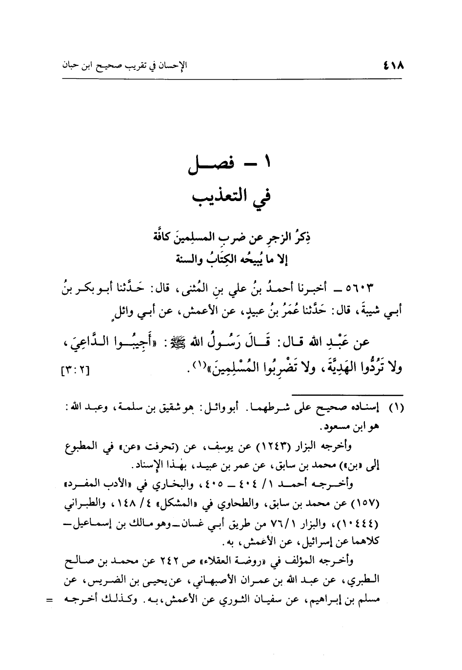 ذِكْرُ الزَّجْرِ عَنْ ضَرْبِ الْمُسْلِمِينَ كَافَّةً إِلَّا مَا يُبِيحُهُ الْكِتَابُ وَالسُّنَّةُ