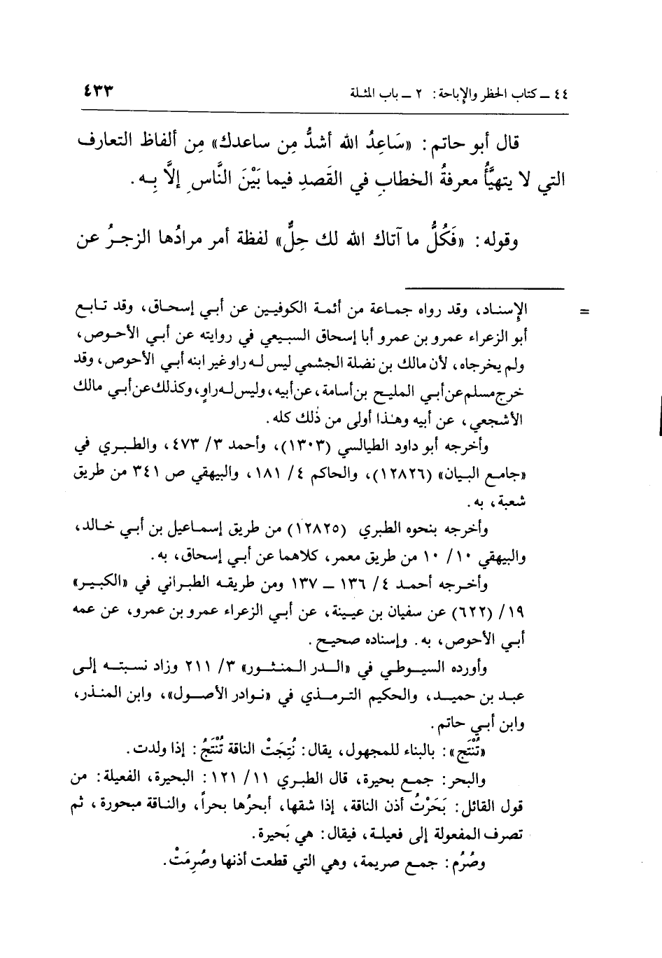 والبحر: جمع بحيرة، قال الطبري 11/121: البحيرة الفعيلة: من قول القائل: بَحَرتُ أذن الناقة، إذا شقها، أبحرُها بحراً، والناقة مبحورة، ثم تصرف المفعولة إلى فعيلة، فيقال: هي بحيرة.
