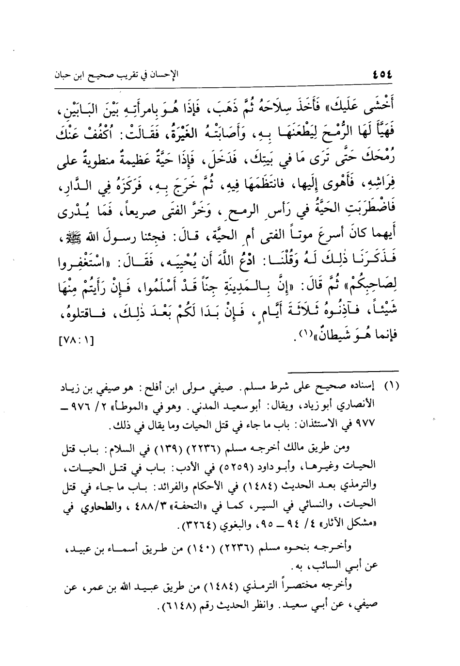 ومن طريق مالك أخرجه مسلم (2236) (139) في السلام: باب قتل الحيات وغيرها، وأبو داود (5259) في الأدب: باب في قتل الحيات، والترمذي بعد الحديث (1484) في الأحكام والفوائد: باب ما جاء في قتل الحيات، والنسائي في السير، كما في " التحفة " 3/488، والطحاوي في " مشكل الآثار " 4/94-95، والبغوي (3264) .