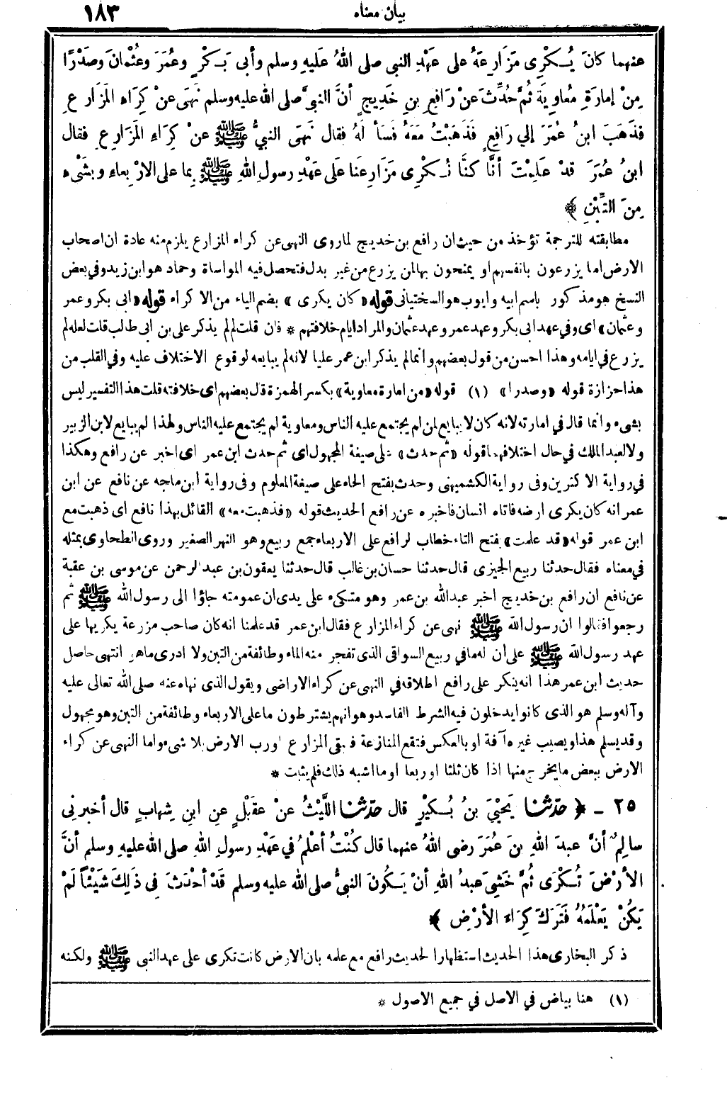 5432 - حدَّثنا يَحْيَى بنُ بُكَيْرٍ قَالَ حدَّثنا اللَّيْثُ عَن عُقَيْلٍ عنِ ابنِ شِهابٍ قَالَ أَخْبرنِي سالِمٌ أنَّ عَبْدَ الله بنَ عُمَرَ رَضِي الله تَعَالَى عَنْهُمَا قَالَ كُنْتُ أعْلَمُ فِي عَهْدِ رسولِ الله صلى الله عَلَيْهِ وَسلم أنَّ الأرْضَ تُكْرَى ثُمَّ خَشِيَ عبدُ الله أنْ يَكُونَ النبيُّ صلى الله عَلَيْهِ وَسلم قَدْ أحْدَث فِي ذَلِكَ شَيْئا لَمْ يَكُنْ يَعْلَمُهُ فتَرَكَ كِرَاءَ الأرْضِ. (انْظُر الحَدِيث 3432) .