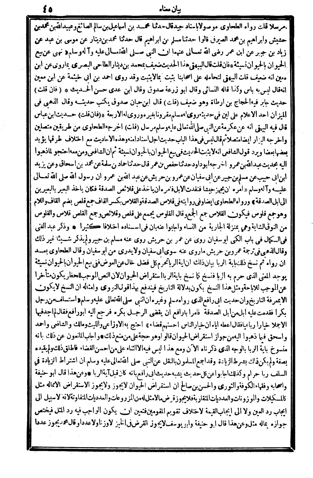 فَإِن قلت: حَدِيث ابْن عَبَّاس قَالَ فِيهِ الْبَيْهَقِيّ: إِنَّه عَن عِكْرِمَة عَن النَّبِي، صلى الله عَلَيْهِ وَسلم، مُرْسل؟ قلت: أخرجه الطَّحَاوِيّ من طَرِيقين متصلين، وَأخرجه الْبَزَّار أَيْضا مُتَّصِلا، ثمَّ قَالَ: لَيْسَ فِي هَذَا الْبَاب حَدِيث أجلّ إِسْنَادًا مِنْهُ، وَهَذِه الْأَحَادِيث مَعَ اخْتِلَاف طرقها يُؤَيّد بَعْضهَا بَعْضًا، وَيرد قَول الشَّافِعِي أَنه لَا يثبت الحَدِيث فِي بيع الْحَيَوَان بِالْحَيَوَانِ نَسِيئَة، ثمَّ إِن الشَّافِعِي وَمن مَعَه احْتَجُّوا لما ذَهَبُوا إِلَيْهِ بِحَدِيث عبد الله بن عَمْرو أخرجه أَبُو دَاوُد: حَدثنَا حَفْص بن عمر، قَالَ: حَدثنَا حَمَّاد بن سَلمَة عَن مُحَمَّد بن إِسْحَاق وَعَن يزِيد ابْن أبي حبيب عَن مُسلم بن جُبَير عَن أبي سُفْيَان عَن عَمْرو بن حريش عَن عبد الله بن عَمْرو: أَن رَسُول الله، صلى الله عَلَيْهِ وَسلم: (أمره أَن يُجهز جَيْشًا، فنفدت الْإِبِل فَأمره أَن يَأْخُذ على قَلَائِص الصَّدَقَة، فَكَانَ يَأْخُذ الْبَعِير بالبعيرين إِلَى إبل الصَّدَقَة) . وَرَاه الطَّحَاوِيّ أَيْضا، وَفِي رِوَايَته فِي قلاص الصَّدَقَة، والقلاص، بِكَسْر الْقَاف جمع قلص بِضَم الْقَاف وَاللَّام، وَهُوَ جمع قلُوص، فَيكون القلاص جمع الْجمع، وَقَالَ: القلوص يجمع على قلص وقلائص، وَجمع القلص قلاص، والقلوص من النوق الشَّابَّة، وَهِي بِمَنْزِلَة الْجَارِيَة من النِّسَاء، وَأَجَابُوا عَنهُ بِأَن فِي إِسْنَاده اخْتِلَافا كثيرا. وَذكر عبد الْغَنِيّ فِي (الْكَمَال) فِي: بَاب الكنى: أَبُو سُفْيَان روى عَن عمر بن حريش روى عَنهُ مُسلم بن جُبَير، وَلم يذكر شَيْئا غير ذَلِك. وَقَالَ الذَّهَبِيّ فِي تَرْجَمَة عَمْرو بن حريش: مَا رُوِيَ عَنهُ سوى أبي سُفْيَان، وَلَا يُدْرَى من أَبُو سُفْيَان، وَقَالَ الطَّحَاوِيّ بعد أَن رَوَاهُ: ثمَّ نسخ ذَلِك بِآيَة الرِّبَا، بَيَان ذَلِك أَن آيَة الرِّبَا تحرم كل فضل خَال عَن الْعِوَض فَفِي بيع الْحَيَوَان بِالْحَيَوَانِ نَسِيئَة، يُوجد الْمَعْنى الَّذِي حرم بِهِ الرِّبَا، فنسخ كَمَا نسخ بِآيَة الرِّبَا استقراض الْحَيَوَان، لِأَن النَّص الْمُوجب للحظر يكون مُتَأَخِّرًا عَن الْمُوجب للْإِبَاحَة، وَمثل هَذَا النّسخ يكون بِدلَالَة التَّارِيخ، فيندفع بِهَذَا قَول النَّوَوِيّ وَأَمْثَاله: أَن النّسخ لَا يكون إلاَّ بِمَعْرِِفَة التَّارِيخ، وَإِن حَدِيث أبي رَافع الَّذِي رَوَاهُ مُسلم وَغَيره أَن النَّبِي، صلى الله عَلَيْهِ وَسلم: (استسلف من رجل بكرا، فَقدمت عَلَيْهِ إبل من إبل الصَّدَقَة، فَأمر أَبَا رَافع أَن يقْضِي الرجل بكره، فَرجع إِلَيْهِ أَبُو رَافع فَقَالَ: لم أجد فِيهَا إلاَّ جملا خيارا رباعيا، فَقَالَ: أعْطه إِيَّاه، إِن خِيَار النَّاس أحْسنهم قَضَاء) . احْتج بِهِ الْأَوْزَاعِيّ وَاللَّيْث وَمَالك وَالشَّافِعِيّ وَأحمد وَإِسْحَاق فِيمَا ذَهَبُوا إِلَيْهِ من جَوَاز استقراض الْحَيَوَان، قَالُوا: وَهُوَ حجَّة على منع ذَلِك. وَأجَاب المانعون عَن ذَلِك بِأَنَّهُ مَنْسُوخ بِآيَة الرِّبَا بِالْوَجْهِ الَّذِي ذَكرْنَاهُ الْآن، وَمَعَ هَذَا لَيْسَ فِيهِ إلاَّ الثَّنَاء على من أحسن الْقَضَاء، فَأطلق ذَلِك وَلم يُقَيِّدهُ بِصفة، وَلم يكن ذَلِك بِشَرْط الزِّيَادَة، وَقد أجمع الْمُسلمُونَ بِالنَّقْلِ عَن النَّبِي، صلى الله عَلَيْهِ وَسلم، أَن اشْتِرَاط الزِّيَادَة فِي السّلف رَبًّا حرَام، وَكَذَلِكَ أجابوا عَن كل حَدِيث يشبه حَدِيث أبي رَافع بِأَنَّهُ كَانَ قبل آيَة الرِّبَا. وَعَن هَذَا قَالَ أَبُو حنيفَة وَأَصْحَابه وفقهاء الْكُوفَة وَالثَّوْري وَالْحسن بن صَالح: إِن استقراض الْحَيَوَان لَا يجوز، وَلَا يجوز الاستقراض إلاَّ مِمَّا لَهُ مثل: كالمكيلات والموزونات والعدديات المتقاربة، فَلَا يجوز قرض مَا لَا مثل لَهُ من المزروعات والعدديات المتفاوتة، لِأَ