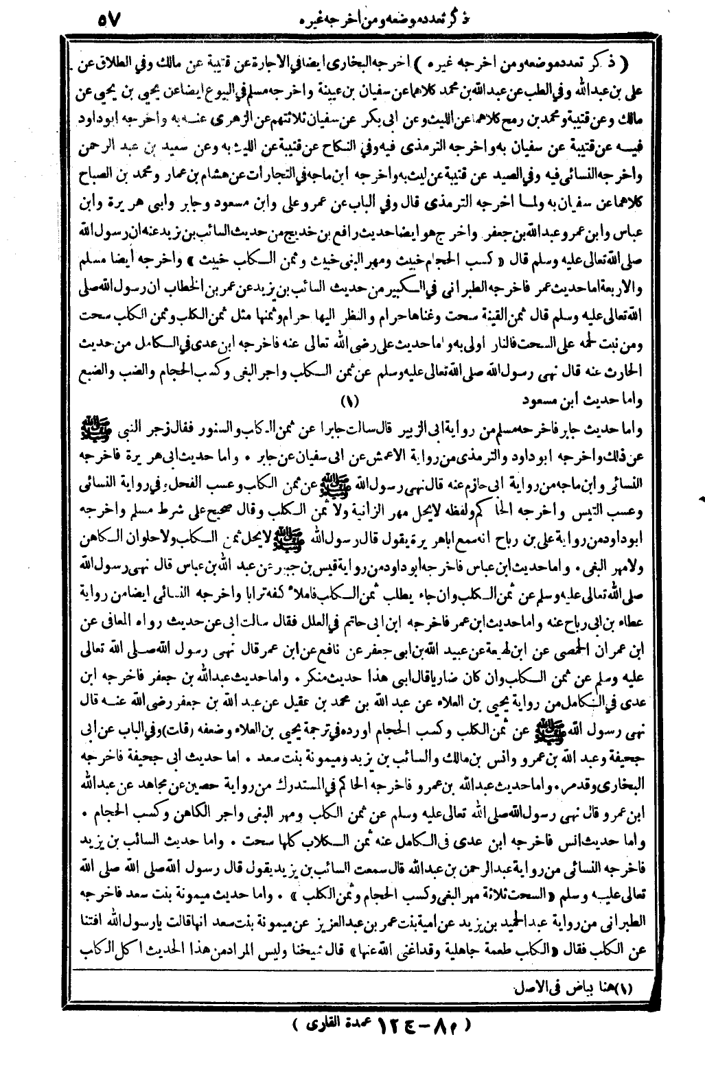 أما حَدِيث عمر فَأخْرجهُ الطَّبَرَانِيّ فِي (الْكَبِير) من حَدِيث السَّائِب بن يزِيد عَن عمر بن الْخطاب: أَن رَسُول الله، صلى الله عَلَيْهِ وَسلم، قَالَ: ثمن الْقَيْنَة سحت وَغِنَاهَا حرَام وَالنَّظَر إِلَيْهَا حرَام وَثمنهَا مثل ثمن الْكَلْب وَثمن الْكَلْب سحت وَمن نبت لَحْمه على السُّحت فَالنَّار أولى بِهِ. وَأما حَدِيث عَليّ، رَضِي الله تَعَالَى عَنهُ، فَأخْرجهُ ابْن عدي فِي (الْكَامِل) من حَدِيث الْحَارِث عَنهُ، قَالَ: نهى رَسُول الله، صلى الله عَلَيْهِ وَسلم، عَن ثمن الْكَلْب وَأجر الْبَغي وَكسب الْحجام والضب والضبع، وَأما حَدِيث ابْن مَسْعُود ...