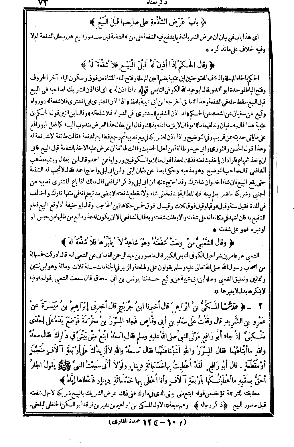 2 - (بابُ عَرْضِ الشُّفْعَةِ على صاحِبِهَا قِبلَ الْبَيْعِ)