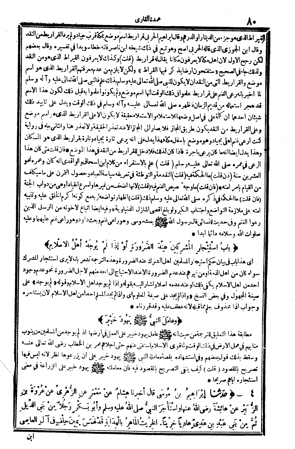 أَي هَذَا بَاب فِي بَيَان حكم استيجار الْمُسلمين أهل الشّرك عِنْد الضَّرُورَة وَهَذِه التَّرْجَمَة تشعر بِأَنَّهُ لَا يرى اسْتِئْجَار الْمُشرك سَوَاء كَانَ من أهل الذِّمَّة أَو من غَيرهم عِنْد عدم الضَّرُورَة إِلَّا عِنْد الِاحْتِيَاج إِلَى أحد مِنْهُم لأجل الضَّرُورَة نَحْو عدم وجود أحد من أهل الْإِسْلَام يَكْفِي ذَلِك أَو عِنْد عَدمه أصلا وَأَشَارَ إِلَيْهِ بقوله وَإِذا لم يُوجد أهل الْإِسْلَام وَقَوله " لم يُوجد " على صِيغَة الْمَجْهُول وَفِي بعض النّسخ " وَإِذا لم يجد على صِيغَة الْمَعْلُوم أَي وَإِذا لم يجد الْمُسلم أحدا من أهل الْإِسْلَام لِأَن يستأجره وَجَوَاب إِذا مَحْذُوف يعلم مِمَّا قبله لِأَنَّهُ عطف عَلَيْهِ وَقد قَرَّرْنَاهُ (وعامل النَّبِي - صَلَّى اللَّهُ عَلَيْهِ وَسَلَّم َ - يهود خَيْبَر) مُطَابقَة هَذَا التَّعْلِيق للتَّرْجَمَة من حَيْثُ أَنه - صَلَّى اللَّهُ عَلَيْهِ وَسَلَّم َ - عَامل يهود خَيْبَر على الْعَمَل فِي أرْضهَا إِذْ لم يُوجد من الْمُسلمين من يَنُوب منابهم فِي عمل الأَرْض فِي ذَلِك الْوَقْت وَلما قوي الْإِسْلَام اسْتغنى عَنْهُم حَتَّى أجلاهم عمر بن الْخطاب رَضِي الله تَعَالَى عَنهُ وَسقط بذلك قَول بَعضهم وَفِي استشهاده بِقصَّة مُعَاملَة النَّبِي - صَلَّى اللَّهُ عَلَيْهِ وَسَلَّم َ - يهود خَيْبَر على أَن يزرعوها نظر لِأَنَّهُ لَيْسَ فِيهَا تَصْرِيح بِالْمَقْصُودِ (قلت) كَيفَ يَنْفِي التَّصْرِيح بِالْمَقْصُودِ فِيهِ فَإِن مُعَامَلَته - صَلَّى اللَّهُ عَلَيْهِ وَسَلَّم َ - يهود خَيْبَر على الزِّرَاعَة فِي معنى استئجاره إيَّاهُم صَرِيحًا