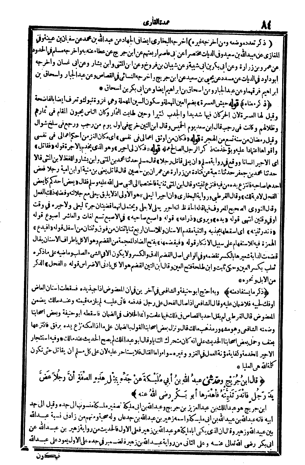 (قَالَ ابْن جريج وحَدثني عبد الله بن أبي مليكَة عَن جده بِمثل هَذِه الصّفة أَن رجلا عض يَد رجل فأندر ثنيته فأهدرها أَبُو بكر رَضِي الله عَنهُ) ابْن جريج هُوَ عبد الْملك بن عبد الْعَزِيز بن جريج وَعبد الله بن أبي مليكَة تَصْغِير ملكة مَنْسُوب إِلَى جده وَقيل إِلَى جد أَبِيه فَإِنَّهُ عبد الله بن عبيد الله بن أبي مليكَة واسْمه زُهَيْر بن عبد الله بن جدعَان وَله صُحْبَة وَمِنْهُم من زَاد فِي نِسْبَة عبد الله بَين عبيد الله وَزُهَيْر وَقَالَ أَن الَّذِي يكنى أَبَا مليكَة هُوَ عبد الله بن زُهَيْر فعلى الأول فَالْحَدِيث من رِوَايَة زُهَيْر بن عبد الله عَن أبي بكر رَضِي الله تَعَالَى عَنهُ وعَلى الثَّانِي من رِوَايَة عبد الله بن زُهَيْر فَالضَّمِير فِي جده على الأول يعود على عبد الله