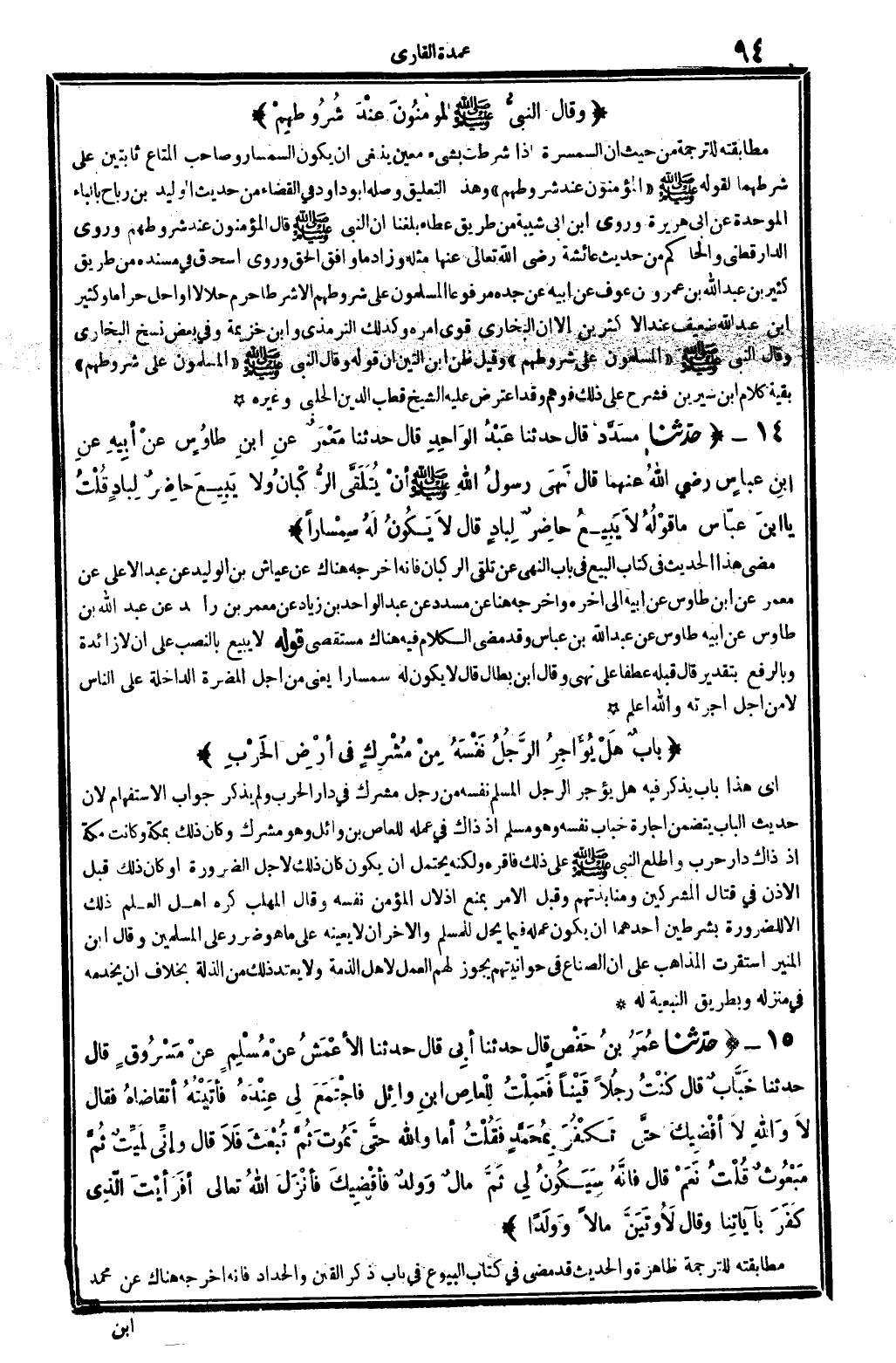 وَقَالَ النبيُّ صلى الله عَلَيْهِ وَسلم المؤمنُونَ عِنْدَ شُرُوطِهِمْ