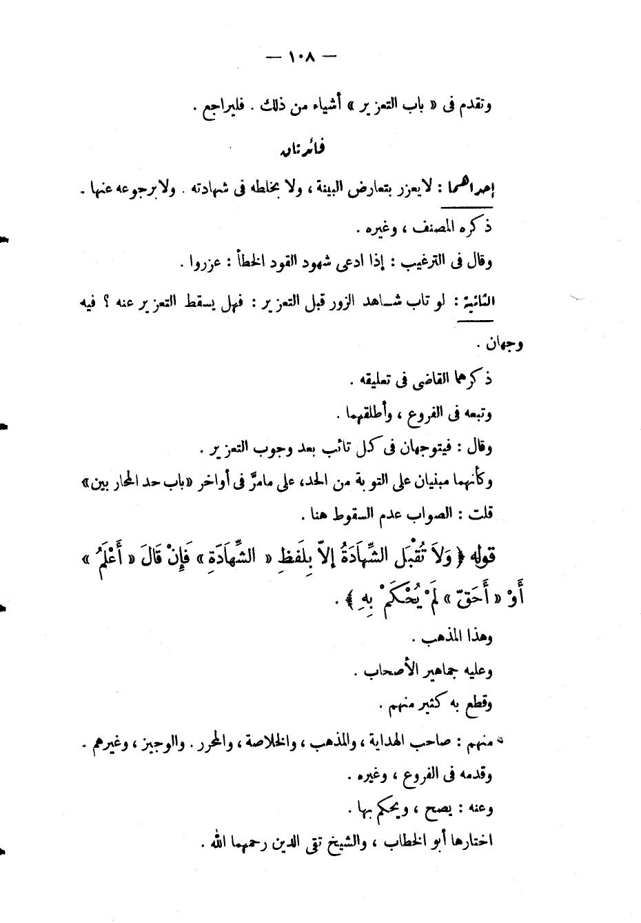 الثَّانِيَةُ: لَوْ تَابَ شَاهِدُ الزُّورِ قَبْلَ التَّعْزِيرِ: فَهَلْ يَسْقُطُ التَّعْزِيرُ عَنْهُ؟ فِيهِ وَجْهَانِ. ذَكَرَهُمَا الْقَاضِي فِي تَعْلِيقِهِ. وَتَبِعَهُ فِي الْفُرُوعِ، وَأَطْلَقَهُمَا. وَقَالَ: فَيَتَوَجَّهَانِ فِي كُلِّ تَائِبٍ بَعْدَ وُجُوبِ التَّعْزِيرِ. وَكَأَنَّهُمَا مَبْنِيَّانِ عَلَى التَّوْبَةِ مِنْ الْحَدِّ، عَلَى مَا مَرَّ فِي أَوَاخِرِ " بَابِ حَدِّ الْمُحَارِبِينَ " قُلْت: الصَّوَابُ عَدَمُ السُّقُوطِ هُنَا.