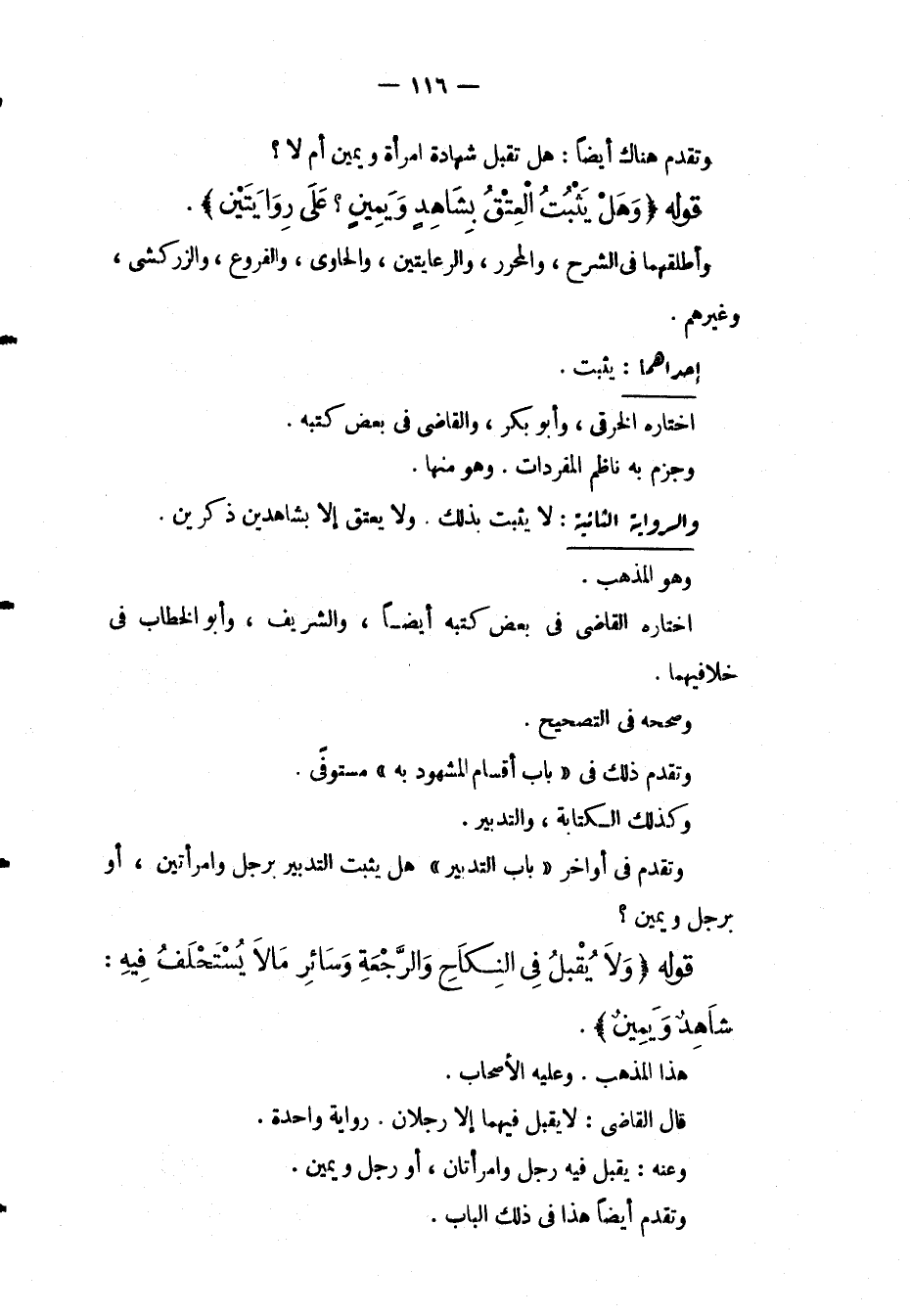 قَوْلُهُ (وَلَا يُقْبَلُ فِي النِّكَاحِ وَالرَّجْعَةِ وَسَائِرِ مَا لَا يُسْتَحْلَفُ فِيهِ: شَاهِدٌ وَيَمِينٌ) . هَذَا الْمَذْهَبُ. وَعَلَيْهِ الْأَصْحَابُ. قَالَ الْقَاضِي: لَا يُقْبَلُ فِيهِمَا إلَّا رَجُلَانِ. رِوَايَةً وَاحِدَةً. وَعَنْهُ: يُقْبَلُ فِيهِ رَجُلٌ وَامْرَأَتَانِ، أَوْ رَجُلٌ وَيَمِينٌ. وَتَقَدَّمَ أَيْضًا هَذَا فِي ذَلِكَ الْبَابِ.