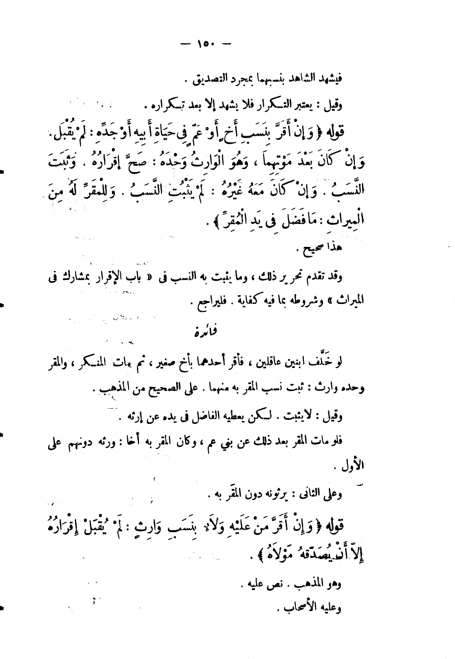 (وَإِنْ أَقَرَّ بِنَسَبِ أَخٍ أَوْ عَمٍّ فِي حَيَاةِ أَبِيهِ أَوْ جَدِّهِ: لَمْ يُقْبَلْ وَإِنْ كَانَ بَعْدَ مَوْتِهِمَا، وَهُوَ الْوَارِثُ وَحْدَهُ: صَحَّ إقْرَارُهُ. وَثَبَتَ النَّسَبُ وَإِنْ كَانَ مَعَهُ غَيْرُهُ: لَمْ يَثْبُتْ النَّسَبُ. وَلِلْمُقَرِّ لَهُ مِنْ الْمِيرَاثِ: مَا فَضَلَ فِي يَدِ الْمُقِرِّ) . هَذَا صَحِيحٌ. وَقَدْ تَقَدَّمَ تَحْرِيرُ ذَلِكَ، وَمَا يَثْبُتُ بِهِ النَّسَبُ فِي " بَابِ الْإِقْرَارِ بِمُشَارِكٍ فِي الْمِيرَاثِ " وَشُرُوطُهُ بِمَا فِيهِ كِفَايَةٌ فَلْيُرَاجَعْ.
