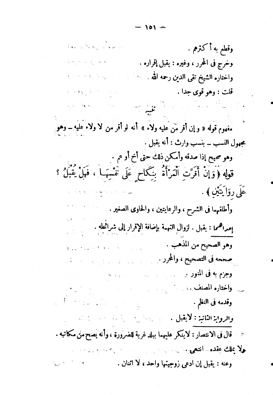وَقَطَعَ بِهِ أَكْثَرُهُمْ. وَخُرِّجَ فِي الْمُحَرَّرِ، وَغَيْرِهِ: يُقْبَلُ إقْرَارُهُ. وَاخْتَارَهُ الشَّيْخُ تَقِيُّ الدِّينِ - رَحِمَهُ اللَّهُ -. قُلْت: وَهُوَ قَوِيٌّ جِدًّا.