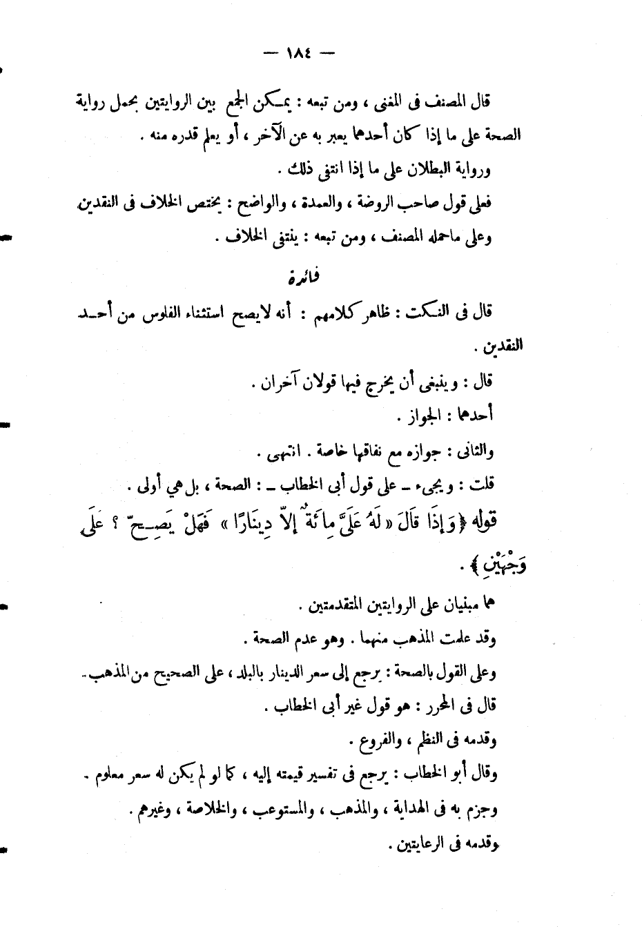 فَائِدَةٌ قَالَ فِي النُّكَتِ: ظَاهِرُ كَلَامِهِمْ: أَنَّهُ لَا يَصِحُّ اسْتِثْنَاءُ الْفُلُوسِ مِنْ أَحَدِ النَّقْدَيْنِ. قَالَ: وَيَنْبَغِي أَنْ يُخَرَّجَ فِيهَا قَوْلَانِ آخَرَانِ. أَحَدُهُمَا: الْجَوَازُ. وَالثَّانِي: جَوَازُهُ مَعَ نِفَاقِهَا خَاصَّةً. انْتَهَى. قُلْت: وَيَجِيءُ عَلَى قَوْلِ أَبِي الْخَطَّابِ: الصِّحَّةُ، بَلْ هِيَ أَوْلَى.
