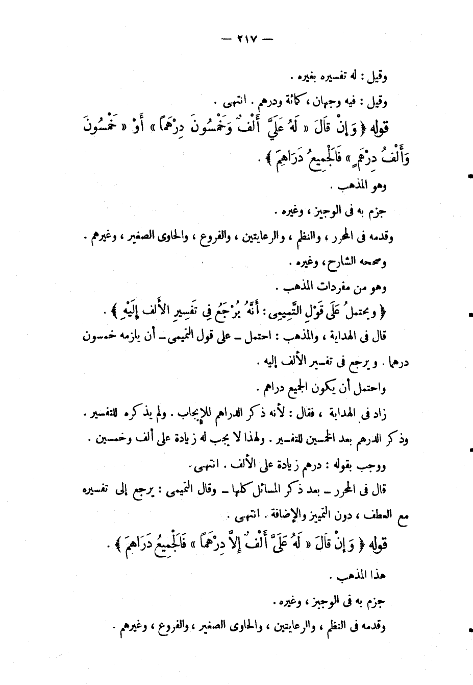 وَقِيلَ: لَهُ تَفْسِيرُهُ بِغَيْرِهِ وَقِيلَ: فِيهِ وَجْهَانِ كَمِائَةٍ وَدِرْهَمٍ انْتَهَى