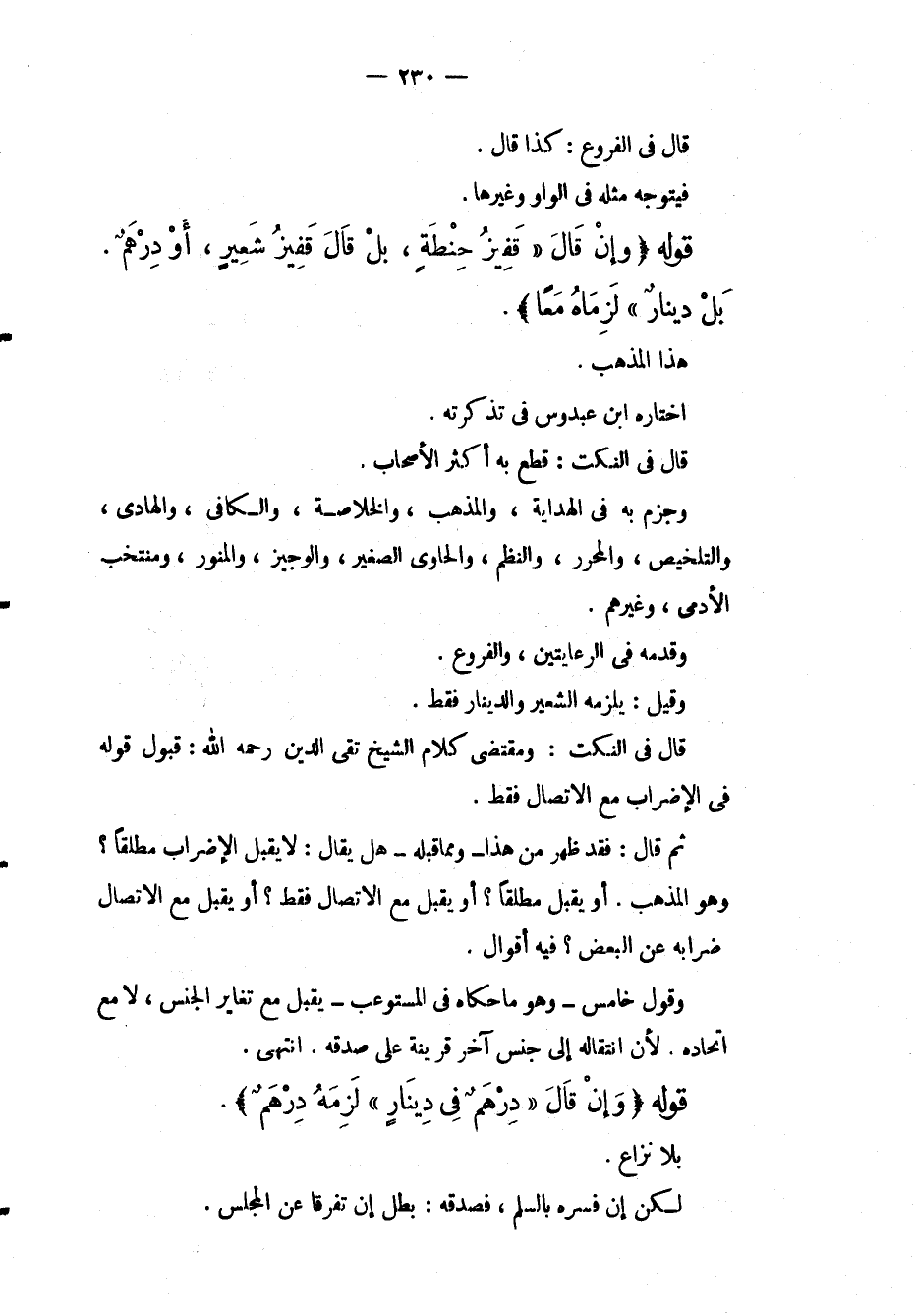 قَوْلُهُ {وَإِنْ قَالَ " قَفِيزُ حِنْطَةٍ، بَلْ قَالَ قَفِيزُ شَعِيرٍ، أَوْ دِرْهَمٌ بَلْ دِينَارٌ " لَزِمَاهُ مَعًا} هَذَا الْمَذْهَبُ اخْتَارَهُ ابْنُ عَبْدُوسٍ فِي تَذْكِرَتِهِ قَالَ فِي النُّكَتِ: قَطَعَ بِهِ أَكْثَرُ الْأَصْحَابِ وَجَزَمَ بِهِ فِي الْهِدَايَةِ، وَالْمُذْهَبِ، وَالْخُلَاصَةِ، وَالْكَافِي، وَالْهَادِي، وَالتَّلْخِيصِ، وَالْمُحَرَّرِ، وَالنَّظْمِ، وَالْحَاوِي الصَّغِيرِ، وَالْوَجِيزِ، وَالْمُنَوِّرِ، وَمُنْتَخَبِ الْأَدَمِيِّ وَغَيْرِهِمْ وَقَدَّمَهُ فِي الرِّعَايَتَيْنِ، وَالْفُرُوعِ وَقِيلَ: يَلْزَمُهُ الشَّعِيرُ وَالدِّينَارُ فَقَطْ قَالَ فِي النُّكَتِ: وَمُقْتَضَى كَلَامِ الشَّيْخِ تَقِيِّ الدِّينِ - رَحِمَهُ اللَّهُ -: قَبُولُ قَوْلِهِ فِي الْإِضْرَابِ مَعَ الِاتِّصَالِ فَقَطْ ثُمَّ قَالَ: فَقَدْ ظَهَرَ مِنْ هَذَا وَمِمَّا قَبْلَهُ هَلْ يُقَالُ: لَا يُقْبَلُ الْإِضْرَابُ مُطْلَقًا؟ وَهُوَ الْمَذْهَبُ أَوْ يُقْبَلُ مُطْلَقًا؟ أَوْ يُقْبَلُ مَعَ الِاتِّصَالِ فَقَطْ؟ أَوْ يُقْبَلُ مَعَ الِاتِّصَالِ ضِرَابُهُ عَنْ الْبَعْضِ؟ فِيهِ أَقْوَالٌ وَقَوْلٌ خَامِسٌ وَهُوَ مَا حَكَاهُ فِي الْمُسْتَوْعِبِ يُقْبَلُ مَعَ تَغَايُرِ الْجِنْسِ، لَا مَعَ اتِّحَادِهِ؛ لِأَنَّ انْتِقَالَهُ إلَى جِنْسٍ آخَرَ قَرِينَةٌ عَلَى صِدْقِهِ انْتَهَى