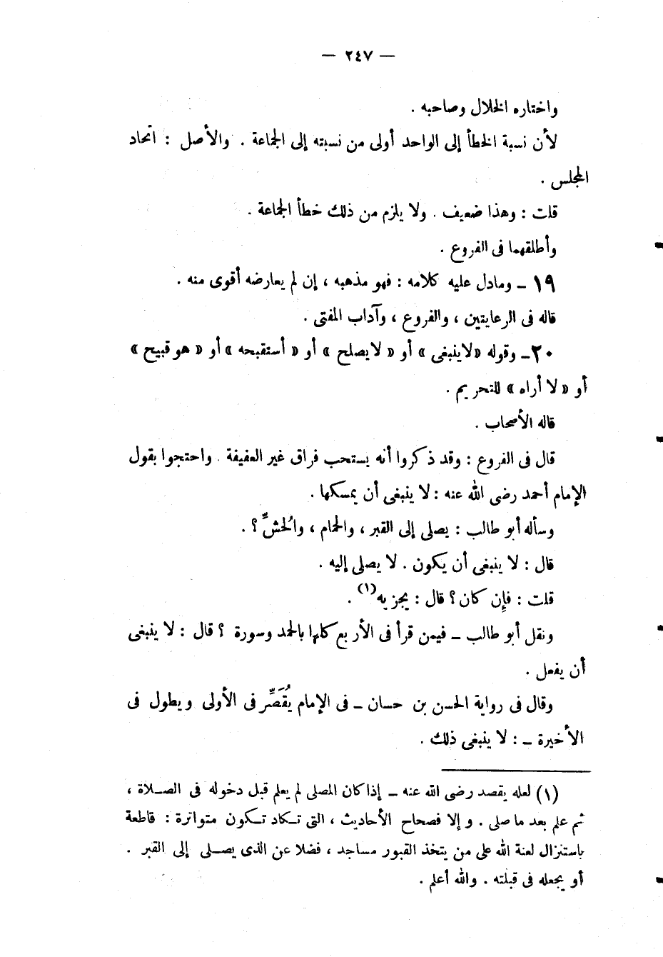 20 - وَقَوْلُهُ " لَا يَنْبَغِي " أَوْ " لَا يَصْلُحُ " أَوْ " اسْتَقْبَحَهُ " أَوْ " هُوَ قَبِيحٌ " أَوْ " لَا أَرَاهُ " لِلتَّحْرِيمِ قَالَهُ الْأَصْحَابُ قَالَ فِي الْفُرُوعِ: وَقَدْ ذَكَرُوا أَنَّهُ يُسْتَحَبُّ فِرَاقُ غَيْرِ الْعَفِيفَةِ وَاحْتَجُّوا بِقَوْلِ الْإِمَامِ أَحْمَدَ - رَضِيَ اللَّهُ عَنْهُ -: لَا يَنْبَغِي أَنْ يُمْسِكَهَا وَسَأَلَهُ أَبُو طَالِبٍ: يُصَلِّي إلَى الْقَبْرِ، وَالْحَمَّامِ، وَالْحُشِّ؟ قَالَ: لَا يَنْبَغِي أَنْ يَكُونَ لَا يُصَلِّ إلَيْهِ قُلْت: فَإِنْ كَانَ؟ قَالَ: يَجْزِيهِ وَنَقَلَ أَبُو طَالِبٍ فِيمَنْ قَرَأَ فِي الْأَرْبَعِ كُلِّهَا بِالْحَمْدِ وَسُورَةٍ؟ قَالَ: لَا يَنْبَغِي أَنْ يَفْعَلَ وَقَالَ فِي رِوَايَةِ الْحَسَنِ بْنِ حَسَّانٍ فِي الْإِمَامِ وَفِي الْأَوْلَى وَيُطَوِّلُ فِي الْأَخِيرَةِ: لَا يَنْبَغِي ذَلِكَ