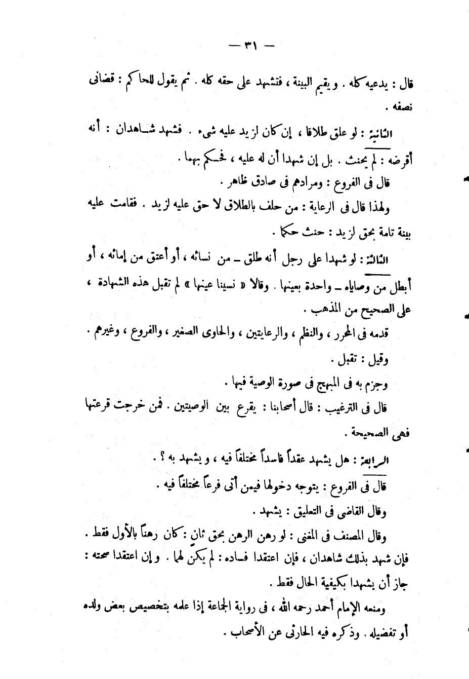 قَالَ: يَدَّعِيهِ كُلَّهُ، وَيُقِيمُ الْبَيِّنَةَ، فَتَشْهَدُ عَلَى حَقِّهِ كُلِّهِ، ثُمَّ يَقُولُ لِلْحَاكِمِ: قَضَانِي نِصْفَهُ. الثَّانِيَةُ: لَوْ عَلَّقَ طَلَاقًا، إنْ كَانَ لِزَيْدٍ عَلَيْهِ شَيْءٌ، فَشَهِدَ شَاهِدَانِ: أَنَّهُ أَقْرَضَهُ: لَمْ يَحْنَثْ، بَلْ إنْ شَهِدَا أَنَّ لَهُ عَلَيْهِ، فَحُكِمَ بِهِمَا، قَالَ فِي الْفُرُوعِ: وَمُرَادُهُمْ فِي صَادِقٍ ظَاهِرٌ، وَلِهَذَا قَالَ فِي الرِّعَايَةِ: مَنْ حَلَفَ بِالطَّلَاقِ لَا حَقَّ عَلَيْهِ لِزَيْدٍ، فَقَامَتْ عَلَيْهِ بَيِّنَةٌ تَامَّةٌ بِحَقٍّ لِزَيْدٍ: حَنِثَ حُكْمًا. الثَّالِثَةُ: لَوْ شَهِدَا عَلَى رَجُلٍ أَنَّهُ طَلَّقَ مِنْ نِسَائِهِ، أَوْ أَعْتَقَ مِنْ إمَائِهِ، أَوْ أَبْطَلَ مِنْ وَصَايَاهُ وَاحِدَةً بِعَيْنِهَا، وَقَالَا " نَسِينَا عَيْنَهَا " لَمْ تُقْبَلْ هَذِهِ الشَّهَادَةُ، عَلَى الصَّحِيحِ مِنْ الْمَذْهَبِ، قَدَّمَهُ فِي الْمُحَرَّرِ، وَالنَّظْمِ، وَالرِّعَايَتَيْنِ، وَالْحَاوِي الصَّغِيرِ، وَالْفُرُوعِ، وَغَيْرِهِمْ، وَقِيلَ: تُقْبَلُ، وَجَزَمَ بِهِ فِي الْمُبْهِجِ فِي صُورَةِ الْوَصِيَّةِ فِيهَا، قَالَ فِي التَّرْغِيبِ: قَالَ أَصْحَابُنَا: يُقْرَعُ بَيْنَ الْوَصِيَّتَيْنِ، فَمَنْ خَرَجَتْ قُرْعَتُهَا فَهِيَ الصَّحِيحَةُ. الرَّابِعَةُ: هَلْ يَشْهَدُ عَقْدًا فَاسِدًا مُخْتَلَفًا فِيهِ، وَيَشْهَدُ بِهِ؟ ، قَالَ فِي الْفُرُوعِ: يَتَوَجَّهُ دُخُولُهَا فِيمَنْ أَتَى فَرْعًا مُخْتَلَفًا فِيهِ، وَقَالَ الْقَاضِي فِي التَّعْلِيقِ: يَشْهَدُ، وَقَالَ الْمُصَنِّفُ فِي الْمُغْنِي: لَوْ رَهَنَ الرَّهْنَ بِحَقٍّ ثَانٍ: كَانَ رَهْنًا بِالْأَوَّلِ فَقَطْ، فَإِنْ شَهِدَ بِذَلِكَ شَاهِدَانِ، فَإِنْ اعْتَقَدَا فَسَادَهُ: لَمْ يَكُنْ لَهُمَا، وَإِنْ اعْتَقَدَا صِحَّتَهُ: جَازَ أَنْ يَشْهَدَا بِكَيْفِيَّةِ الْحَالِ فَقَطْ، وَمَنَعَهُ الْإِمَامُ أَحْمَدُ - رَحِمَهُ اللَّهُ -، فِي رِوَايَةِ الْجَمَاعَةِ إذَا عَلِمَهُ بِتَخْصِيصِ بَعْضِ وَلَدِهِ أَوْ تَفْضِيلِهِ، وَذَكَرَهُ فِيهِ الْحَارِثِيُّ عَنْ الْأَصْحَابِ،