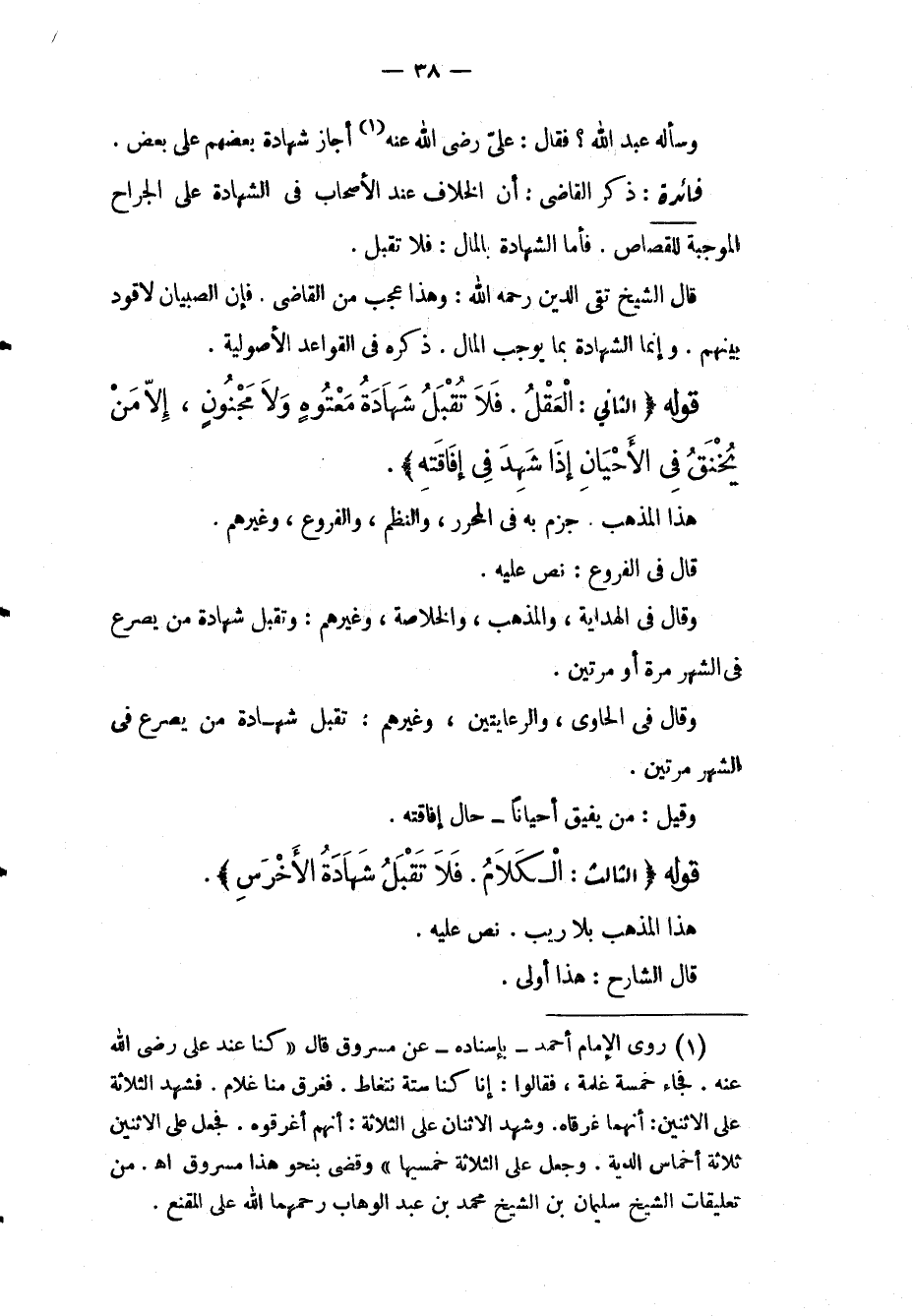 وَسَأَلَهُ عَبْدُ اللَّهِ؟ فَقَالَ: عَلِيٌّ - رَضِيَ اللَّهُ عَنْهُ - أَجَازَ شَهَادَةَ بَعْضِهِمْ عَلَى بَعْضٍ.