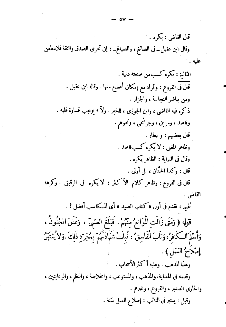 الثَّانِيَةُ: يُكْرَهُ كَسْبُ مَنْ صَنْعَتُهُ دَنِيَّةٌ، قَالَ فِي الْفُرُوعِ: وَالْمُرَادُ مَعَ إمْكَانِ أَصْلَحَ مِنْهَا، وَقَالَهُ ابْنُ عَقِيلٍ، وَمَنْ يُبَاشِرُ النَّجَاسَةَ، وَالْجَزَّارُ. ذَكَرَهُ فِيهِ الْقَاضِي، وَابْنُ الْجَوْزِيِّ، لِلْخَبَرِ؛ وَلِأَنَّهُ يُوجِبُ قَسَاوَةَ قَلْبِهِ، وَفَاصِدٍ، وَمُزَيِّنٍ، وَجَرَائِحِيٍّ، وَنَحْوِهِمْ، قَالَ بَعْضُهُمْ: وَبَيْطَارٍ، وَظَاهِرُ الْمُغْنِي: لَا يُكْرَهُ كَسْبُ فَاصِدٍ، وَقَالَ فِي النِّهَايَةِ: الظَّاهِرُ يُكْرَهُ، قَالَ: وَكَذَا الْخَتَّانُ، بَلْ أَوْلَى، قَالَ فِي الْفُرُوعِ: وَظَاهِرُ كَلَامِ الْأَكْثَرِ: لَا يُكْرَهُ فِي الرَّقِيقِ، وَكَرِهَهُ الْقَاضِي.