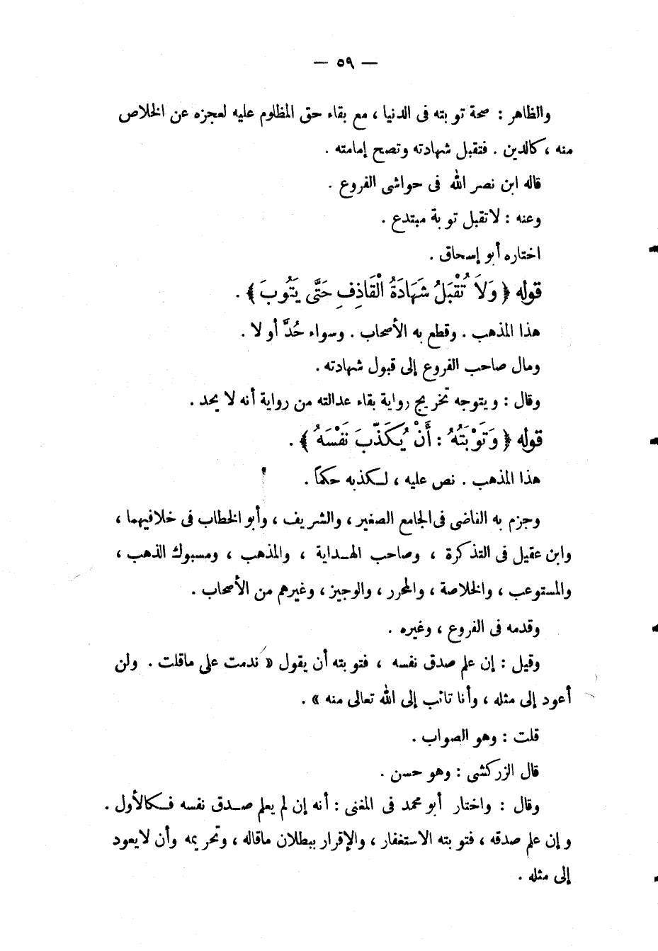قَوْلُهُ (وَلَا تُقْبَلُ شَهَادَةُ الْقَاذِفِ حَتَّى يَتُوبَ) ، هَذَا الْمَذْهَبُ، وَقَطَعَ بِهِ الْأَصْحَابُ، وَسَوَاءٌ حُدَّ أَوْ لَا، وَمَالَ صَاحِبُ الْفُرُوعِ إلَى قَبُولِ شَهَادَتِهِ، وَقَالَ: وَيَتَوَجَّهُ تَخْرِيجُ رِوَايَةِ بَقَاءِ عَدَالَتِهِ مِنْ رِوَايَةِ أَنَّهُ لَا يُحَدُّ.