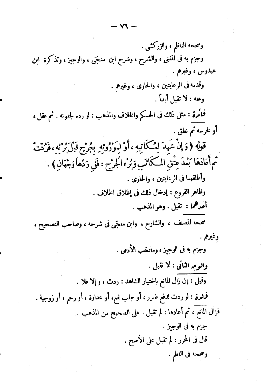 وَصَحَّحَهُ النَّاظِمُ، وَالزَّرْكَشِيُّ، وَجَزَمَ بِهِ فِي الْمُغْنِي، وَالشَّرْحِ، وَشَرْحِ ابْنِ مُنَجَّا، وَالْوَجِيزِ، وَتَذْكِرَةِ ابْنِ عَبْدُوسٍ، وَغَيْرِهِمْ، وَقَدَّمَهُ فِي الرِّعَايَتَيْنِ، وَالْحَاوِي، وَغَيْرِهِمْ، وَعَنْهُ: لَا تُقْبَلُ أَبَدًا.
