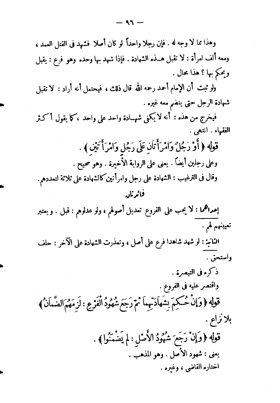وَهَذَا مِمَّا لَا وَجْهَ لَهُ، فَإِنَّ رَجُلًا وَاحِدًا لَوْ كَانَ أَصْلًا فَشَهِدَ فِي الْقَتْلِ الْعَمْدِ، وَمَعَهُ أَلْفُ امْرَأَةٍ: لَا تُقْبَلُ هَذِهِ الشَّهَادَةُ، فَإِذَا شَهِدَ بِهَا وَحْدَهُ وَهُوَ فَرْعٌ: يُقْبَلُ وَيُحْكَمُ بِهَا؟ هَذَا مُحَالٌ، وَلَوْ ثَبَتَ أَنَّ الْإِمَامَ أَحْمَدَ - رَحِمَهُ اللَّهُ - قَالَ ذَلِكَ، فَيُحْتَمَلُ أَنَّهُ أَرَادَ: لَا تُقْبَلُ شَهَادَةُ الرَّجُلِ حَتَّى يَنْضَمَّ مَعَهُ غَيْرُهُ، فَيَخْرُجُ مِنْ هَذِهِ: أَنَّهُ لَا يَكْفِي شَهَادَةُ وَاحِدٍ عَلَى وَاحِدٍ، كَمَا يَقُولُ أَكْثَرُ الْفُقَهَاءِ. انْتَهَى. قَوْلُهُ (أَوْ رَجُلٌ وَامْرَأَتَانِ عَلَى رَجُلٍ وَامْرَأَتَيْنِ) ، وَعَلَى رَجُلَيْنِ أَيْضًا، يَعْنِي عَلَى الرِّوَايَةِ الْأَخِيرَةِ، وَهُوَ صَحِيحٌ، وَقَالَ فِي التَّرْغِيبِ: الشَّهَادَةُ عَلَى رَجُلٍ وَامْرَأَتَيْنِ كَالشَّهَادَةِ عَلَى ثَلَاثَةٍ لِتَعَدُّدِهِمْ. فَائِدَتَانِ إحْدَاهُمَا: لَا يَجِبُ عَلَى الْفُرُوعِ تَعْدِيلُ أُصُولِهِمْ، وَلَوْ عَدَّلُوهُمْ قَبْلُ، وَيُعْتَبَرُ تَعْيِينُهُمْ لَهُمْ. الثَّانِيَةُ لَوْ شَهِدَ شَاهِدَا فَرْعٍ عَلَى أَصْلٍ، وَتَعَذَّرَتْ الشَّهَادَةُ عَلَى الْآخَرِ: حَلَفَ وَاسْتَحَقَّ، ذَكَرَهُ فِي التَّبْصِرَةِ، وَاقْتَصَرَ عَلَيْهِ فِي الْفُرُوعِ.