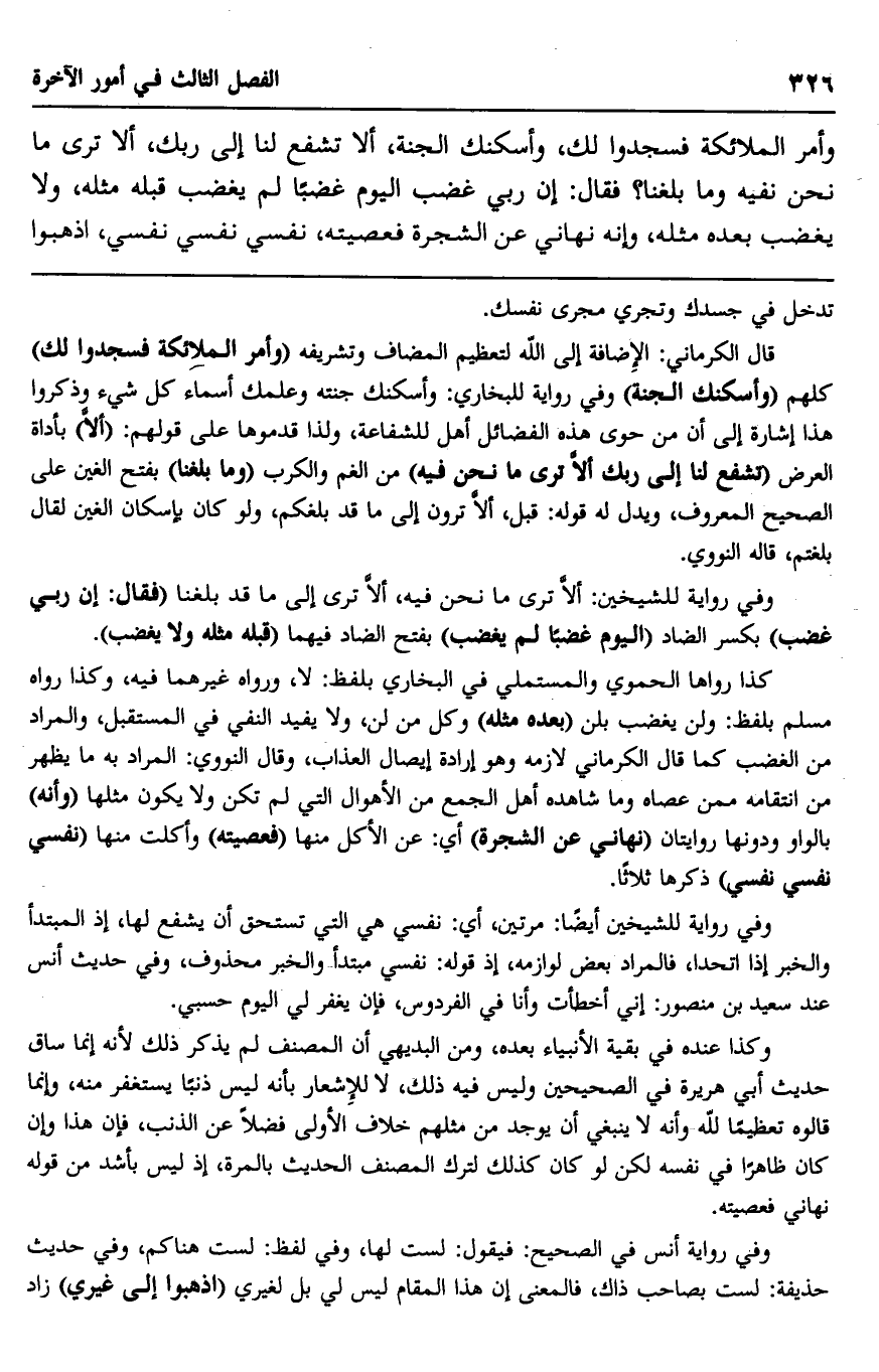 وكذا عنده في بقية الأنبياء بعده، ومن البديهي أن المصنف لم يذكر ذلك؛ لأنه إنما ساق حديث أبي هريرة في الصحيحين, وليس فيه ذلك، لا للإشعار بأنه ليس ذنبًا يستغفر منه، وإنما قالوه تعظيمًا لله, وأنه لا ينبغي أن يوجد من مثلهم خلاف الأولى, فضلًا عن الذنب، فإن هذا وإن كان ظاهرًا في نفسه لكن لو كان كذلك لترك المصنف الحديث بالمرة؛ إذ ليس بأشد من قوله: "نهاني فعصيته".