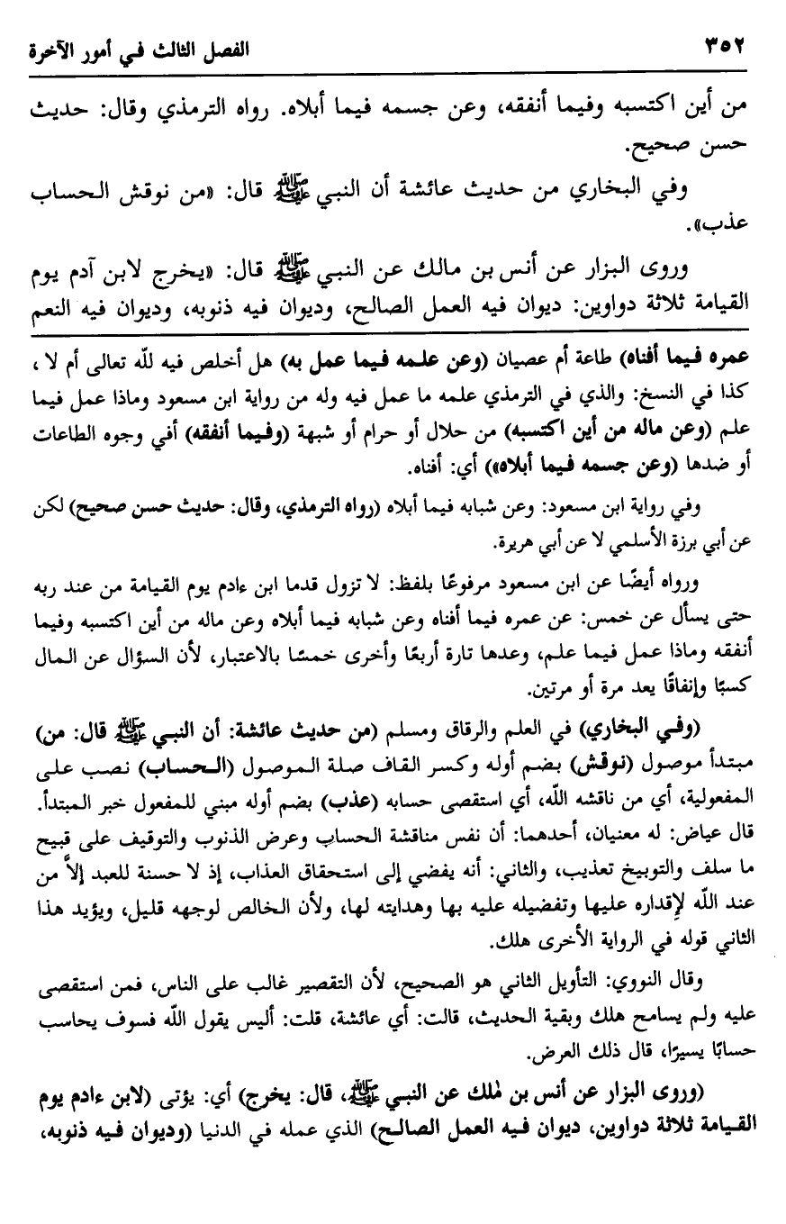 من أين اكتسبه وفيما أنفقه، وعن جسمه فيما أبلاه" رواه الترمذي وقال: حديث حسن صحيح.