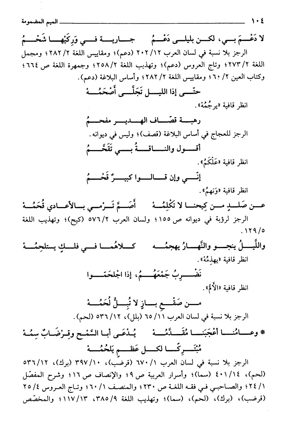 الرجز بلا نسبة في لسان العرب 1/ 670 (قرضب)، 10/ 397 (برك)، 12/ 536 (لحم)، 14/ 401 (سما)؛ وأسرار العربية ص 9؛ والإنصاف ص 16؛ وشرح المفصّل 1/ 24؛ والصاحبي في فقه اللغة ص 230؛ والمنصف 1/ 60؛ وتاج العروس 4/ 25 (قرضب)، (برك)، (لحم)، (سما)؛ وتهذيب اللغة 9/ 385، 13/ 117؛ والمخصّص