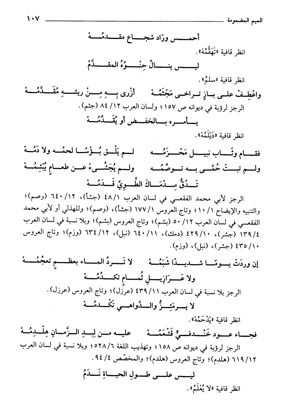 انظر قافية "تَهَقُّمُهْ".