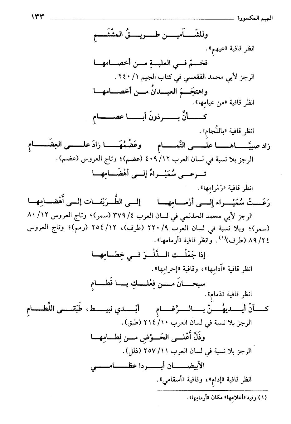 انظر قافية "آدامِها"، وقافية "إحرامِها".