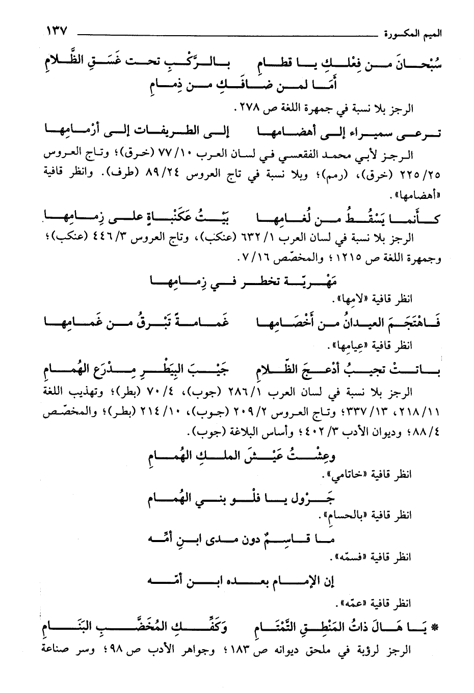 الرجز لأبي محمد الفقعسي في لسان العرب 10/ 77 (خرق)؛ وتاج العروس 21/ 225 (خرق)، (رمم)؛ وبلا نسبة في تاج العروس 23/ 89 (طرف). وانظر قافية "أهضامها".