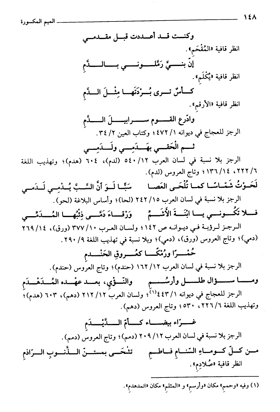 الرجز بلا نسبة في لسان العرب 12/ 209 (دمم)؛ وتاج العروس (دمم).