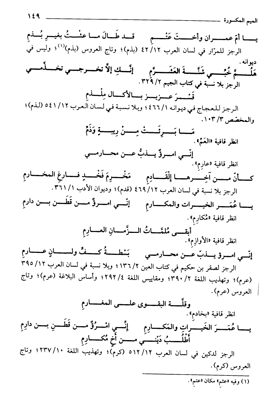 الرجز لصقر بن حكيم في كتاب العين 2/ 136؛ وبلا نسبة في لسان العرب 12/ 395 (عرم)؛ وتهذيب اللغة 2/ 390؛ ومقاييس اللغة 4/ 292؛ وأساس البلاغة (عرم)؛ وتاج العروس (عرم).