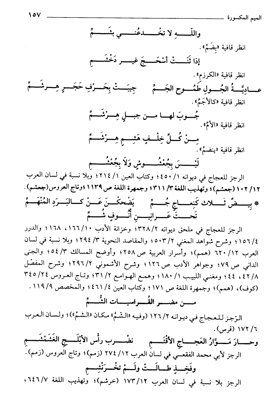 الرجز للعجاج في ملحق ديوانه 2/ 328؛ وخزانة الأدب 10/ 166، 168؛ والدرر 4/ 156؛ وشرح شواهد المغني 2/ 503؛ والمقاصد النحوية 3/ 294؛ وبلا نسبة في لسان العرب 12/ 620 (همم)؛ وأسرار العربية ص 258؛ وأوضح المسالك 3/ 54؛ والجنى الداني ص 79؛ وجواهر الأدب ص 126؛ وشرح الأشموني 2/ 296؛ وشرح المفصل 8/ 42، 44؛ ومغني اللبيب 1/ 180؛ وهمع الهوامع 2/ 31؛ وتاج العروس 24/ 345 (كوف)، (همم)؛ وجمهرة اللغة ص 171؛ وكتاب العين 4/ 461؛ والمخصص 9/ 119.