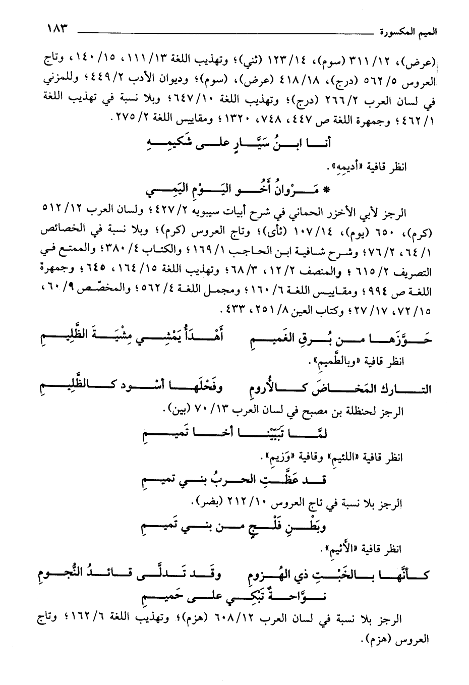 انظر قافية "اللئيم" وقافية "وزيم".