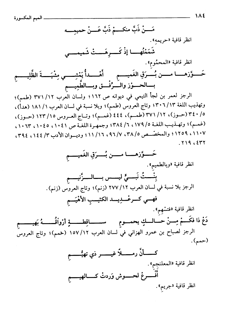 الرجز لعمر بن لجأ التيمي في ديوانه ص 162؛ ولسان العرب 12/ 371 (طمم)؛ وتهذيب اللغة 13/ 306؛ وتاج العروس (طمم)؛ وبلا نسبة في لسان العرب 1/ 181 (هدأ)، 5/ 340 (حوز)، 12/ 371 (طمم)، 444 (غمم)؛ وتاج العروس 15/ 123 (حوز)، (غمم)؛ وتهذيب اللغة 5/ 179، 6/ 384؛ وجمهرة اللغة ص 1041، 1045، 1063، 1107، 1259؛ والمخصص 5/ 38، 7/ 96، 16/ 11؛ وديوان الأدب 3/ 144، 394، 432، 219.