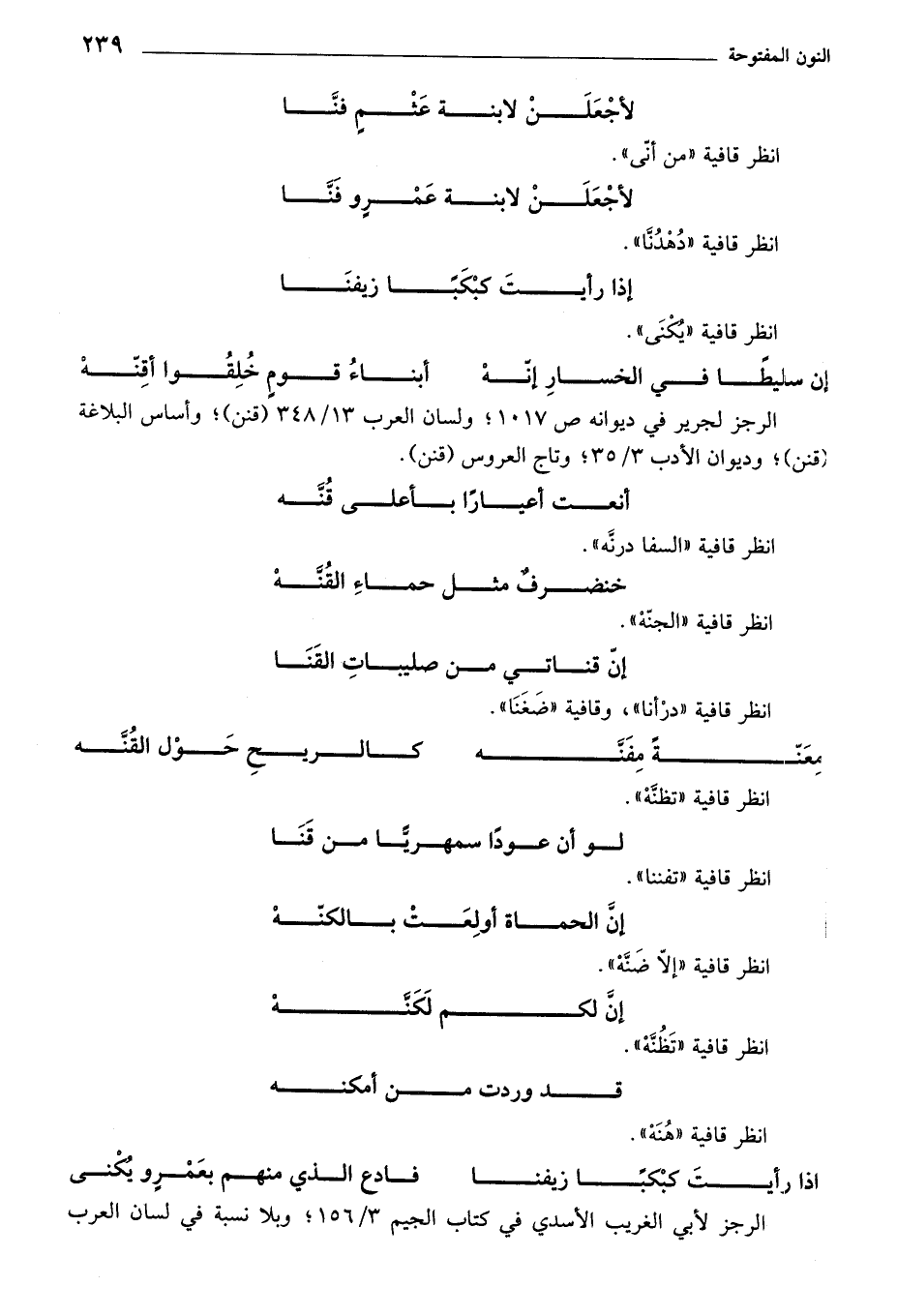 الرجز لجرير في ديوانه ص 1017؛ ولسان العرب 13/ 348 (قنن)؛ وأساس البلاغة (قنن)؛ وديوان الأدب 3/ 35؛ وتاج العروس (قنن).