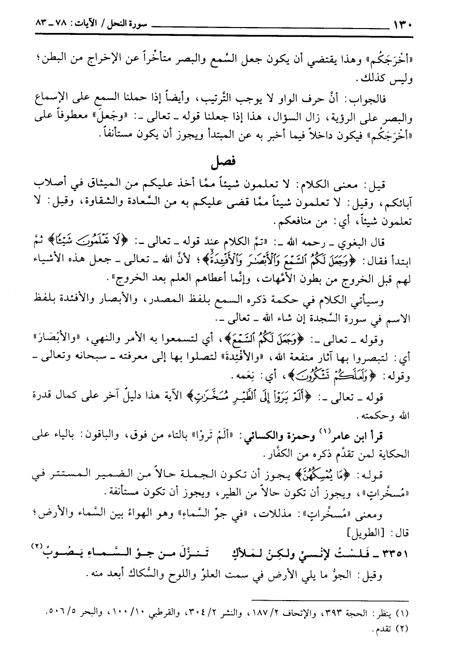 قال البغوي - رَحِمَهُ اللَّهُ -: «تمَّ الكلام عند قوله - تعالى -: {لاَ تَعْلَمُونَ شَيْئاً} ثمَّ ابتدأ فقال: {وَجَعَلَ لَكُمُ السمع والأبصار والأفئدة} ؛ لأنَّ الله - تعالى - جعل هذه الأشياء لهم قبل الخروج من بطون الأمَّهات، وإنَّما أعطاهم العلم بعد الخروج» .
