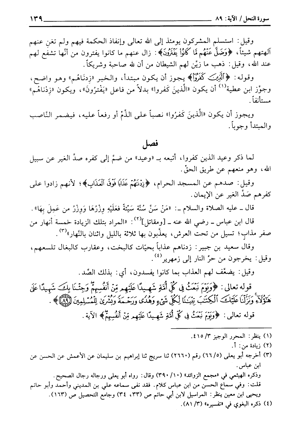 لما ذكر وعيد الذين كفروا، أتبعه ب «وعيد» من ضمَّ إلى كفره صدَّ الغير عن سبيل الله، وهو منعهم عن طريق الحقِّ.