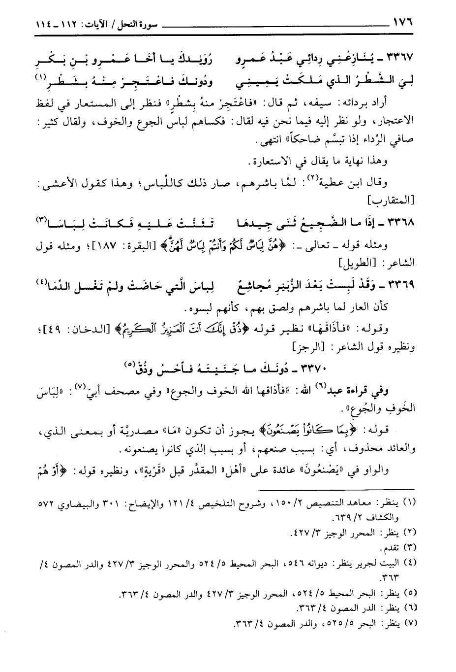 3370 - دُونَكَ ما جَنَيْتَهُ فاحْسُ وذُقْ ... وفي قراءة عبد الله: «فأذاقها الله الخوف والجوع» وفي مصحف أبيّ: «لِبَاسَ الخَوفِ والجُوعِ» .